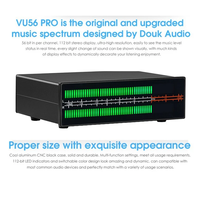1. VU56-Pro-это двухцветный (зеленый + красный) дисплей, многофункциональное устройство отображения уровня стерео музыки, каждый канал использует 56 цифр, всего 112 цифр светодиодов, достаточно высокое разрешение, он позволяет контролировать состояние уровня музыки в режиме реального времени и удобно управлять данными записи. Отслеживайте каждую деталь музыкальных изменений с различными динамическими эффектами дисплея, чтобы добавить больше удовольствия вашей работе и жизни!