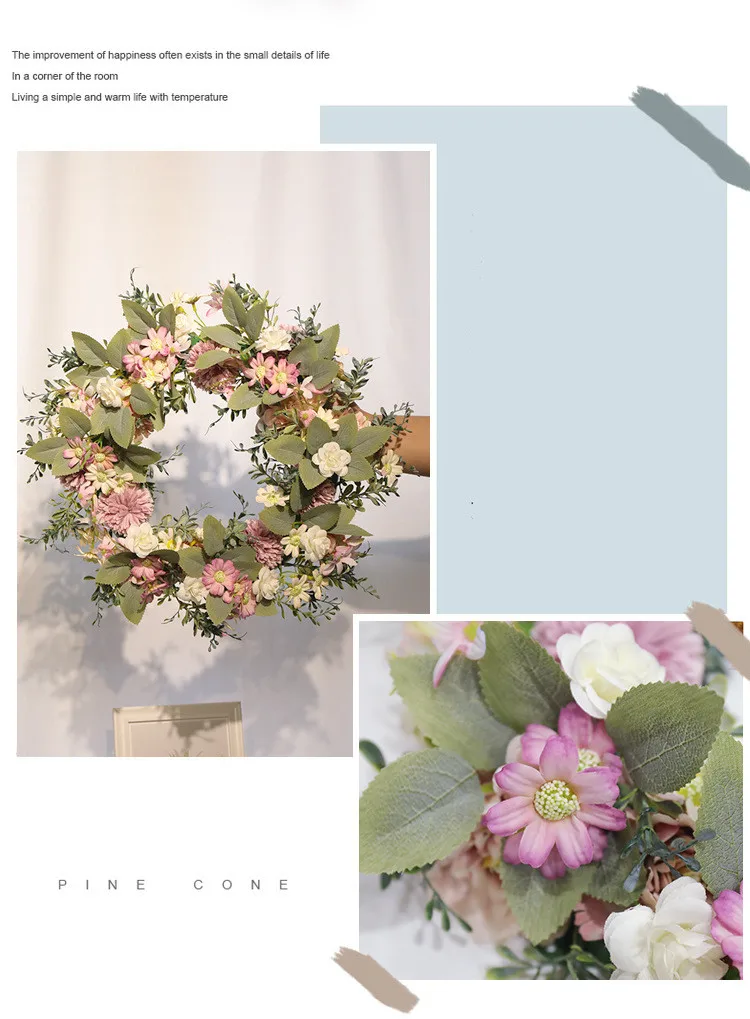[Материал]:& nbsp; Искусственные цветы из шелковой ткани, кольцо из ротанга сзади