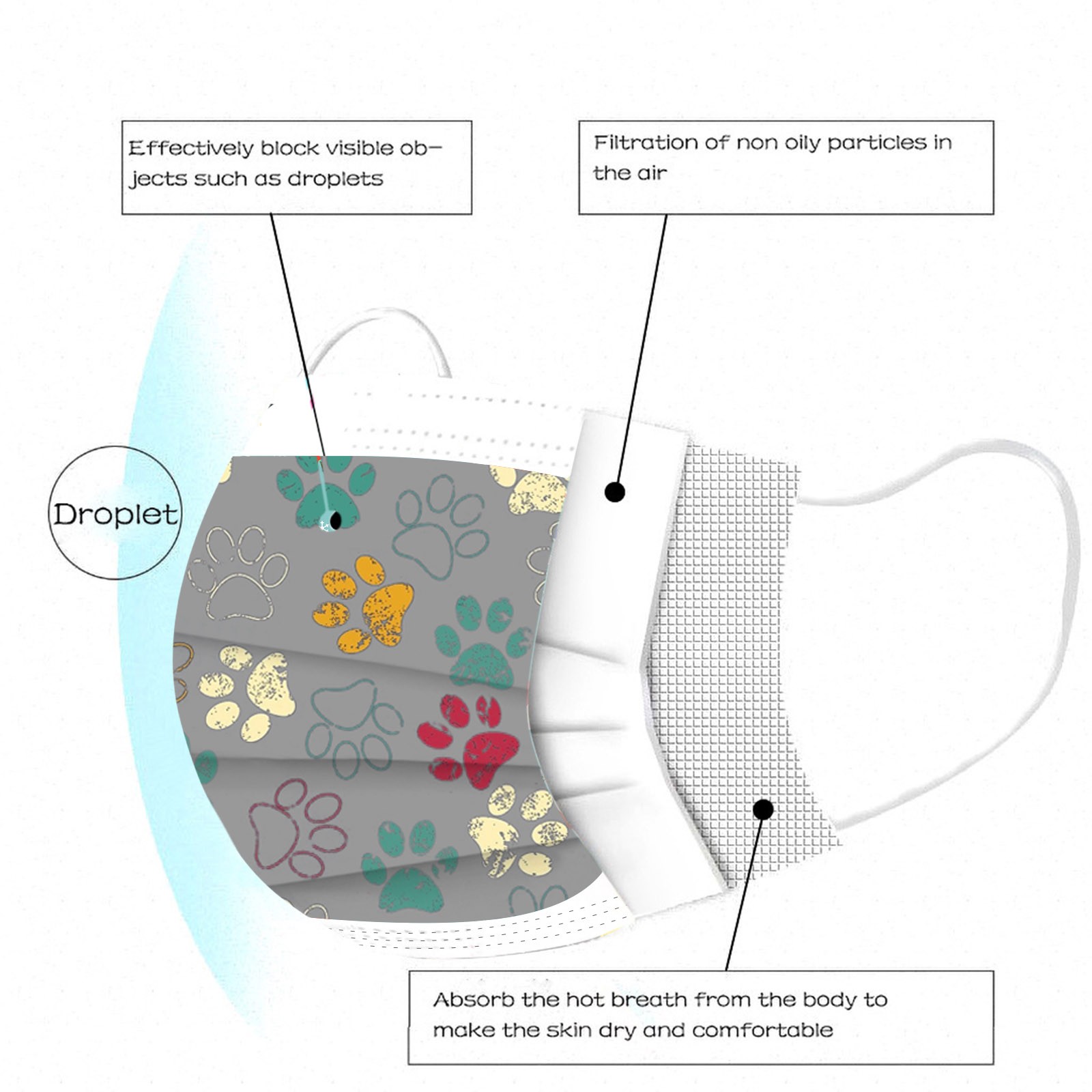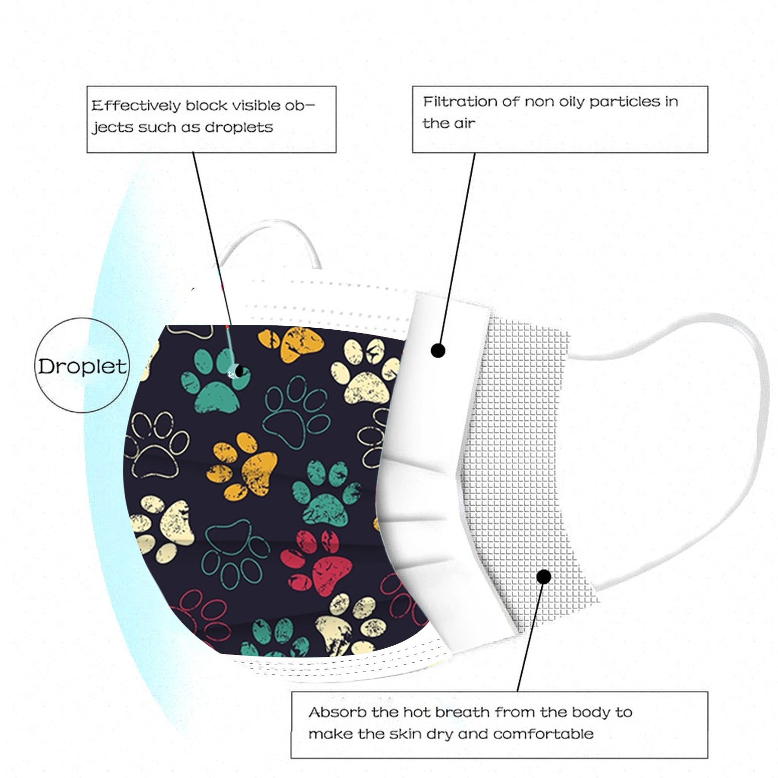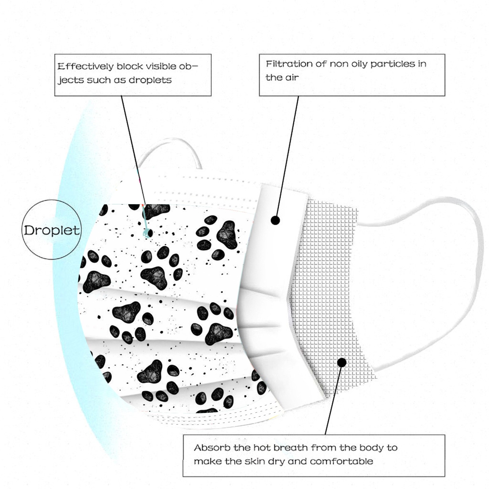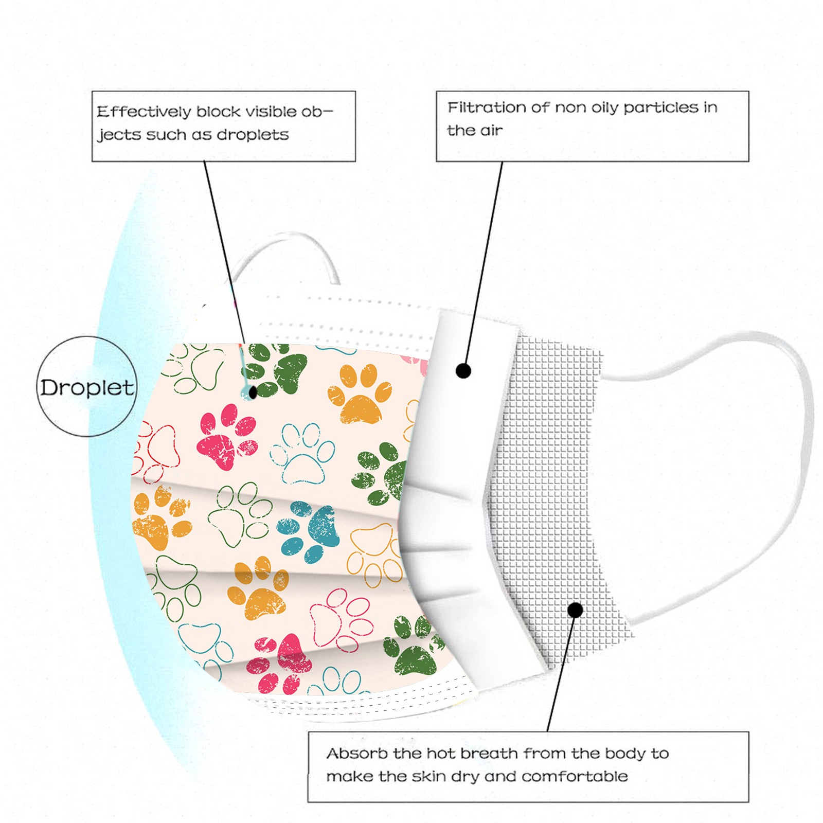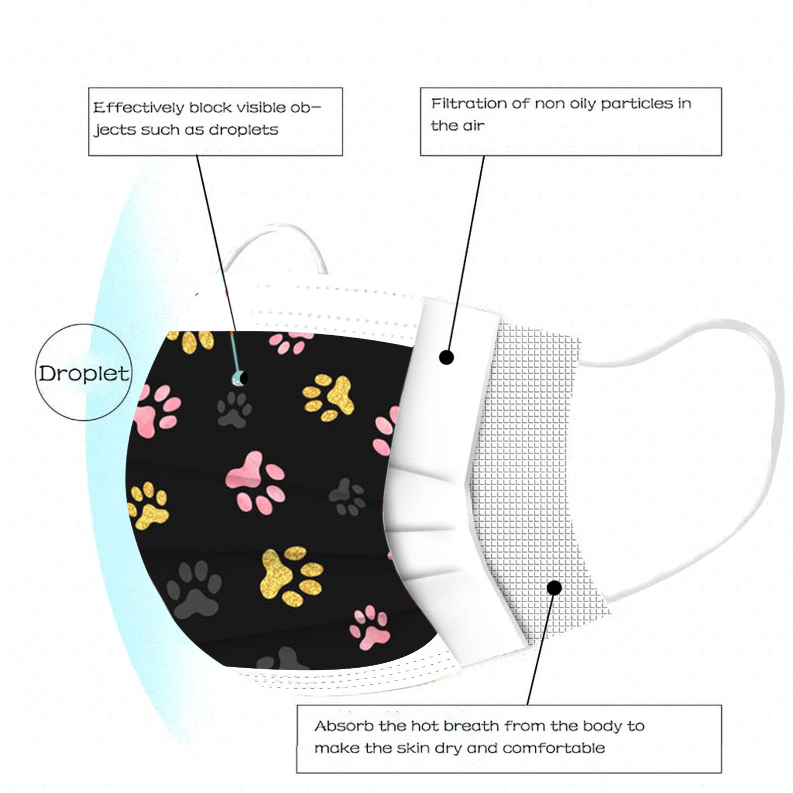 3 слоя Нетканая одноразовая маска изготовлена из 3 слоев нетканого материала, он безопасен для здоровья и безопасный для вас, чтобы использовать. Дышащий материал и милые узоры, что делает его полезным и модным. Специальный 3 слоя из нетканого материала, дизайн, обеспечивает некоторые меры защиты от пыли, автомобильный отходящий газ, пыльцу и т. Д. Эластичная петля уха позволяет легко снимать и надевать цепочку и не давит на уши. Маникюрный салон или любые другие области, где может потребоваться защита