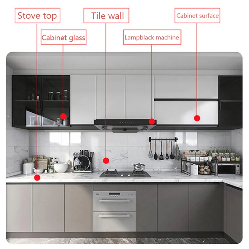 4. Широкий спектр применения: подходит для плоских и гладких поверхностей, таких как столы, стены, прилавки, кухонные шкафы, окна, двери и т. д.