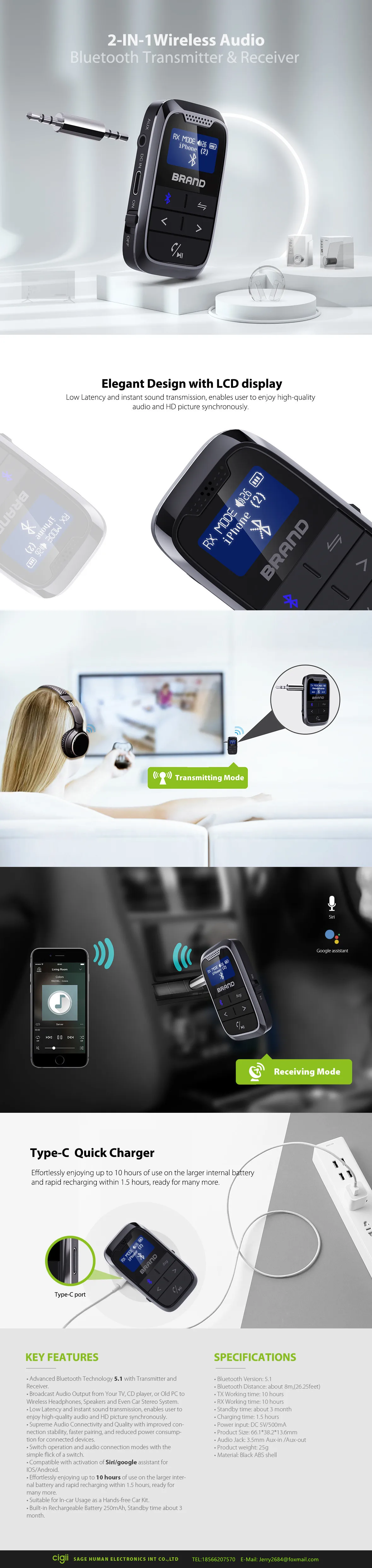 Два в одном Bluetooth передатчик и приемник беспроводной аудио адаптер