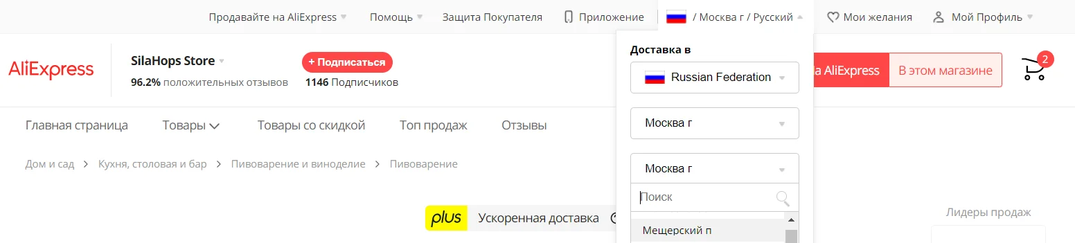 Для возможности доставки товара в Россию, необходимо изменить адрес доставки в верхней строке.
