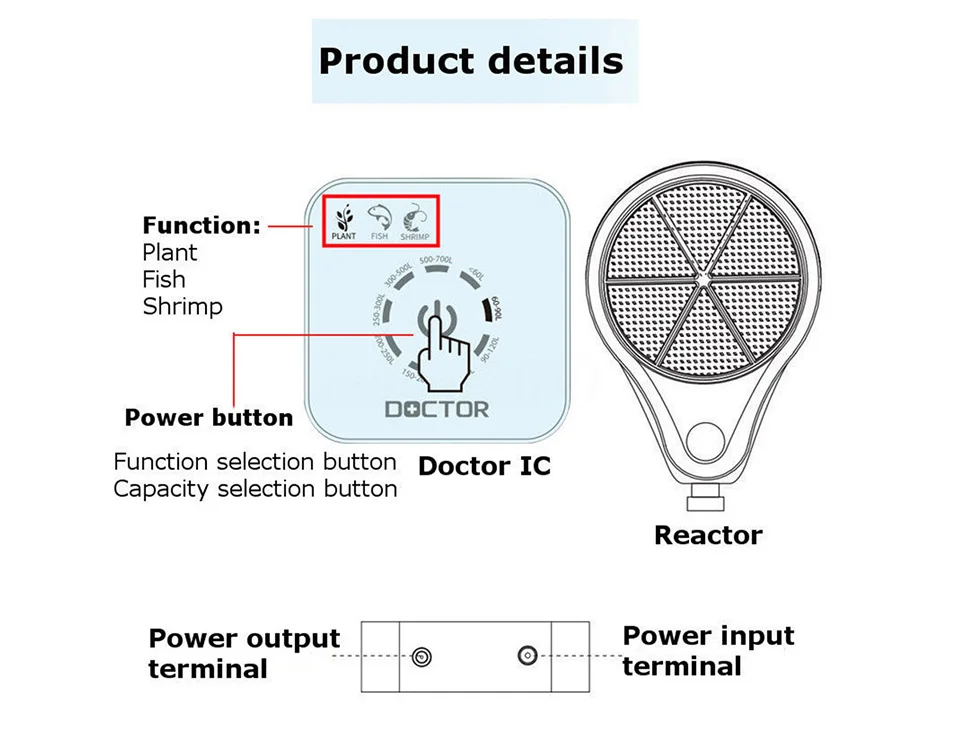 Безопасно из-за сосуществования с фильтром бактерий -Поскольку нет остаточной токсичности, она ограничена аэробными бактериями. -По сравнению с УФ-стерилизатором, Chihiros DOCTOR не работает стабильно, поэтому Регенерация и восстановление фильтрующих бактерий происходит быстро.