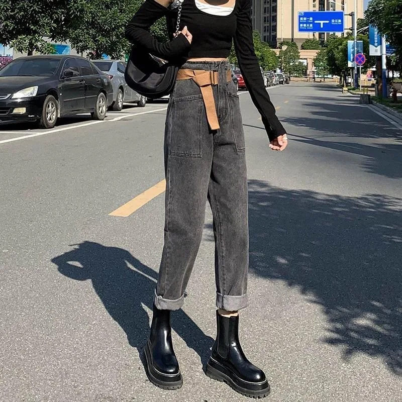 Женские винтажные джинсы Длинные ковбойские брюки с принтом Свободные