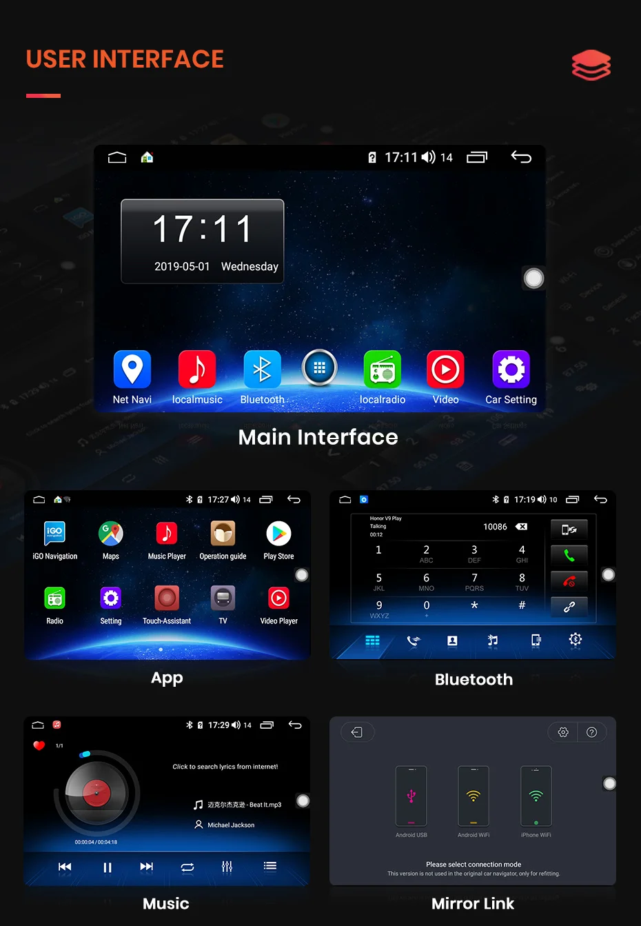 Устройство оснащено Навигатором, воспроизведением музыки, функцией парковки и т. д. для подключения к Интернету версии Wi-Fi должны служить вашим смартфоном в качестве точки доступа. Для владельцев автомобилей, которые часто используют Интернет во время путешествия, мы рекомендуем купить версии 4G.
