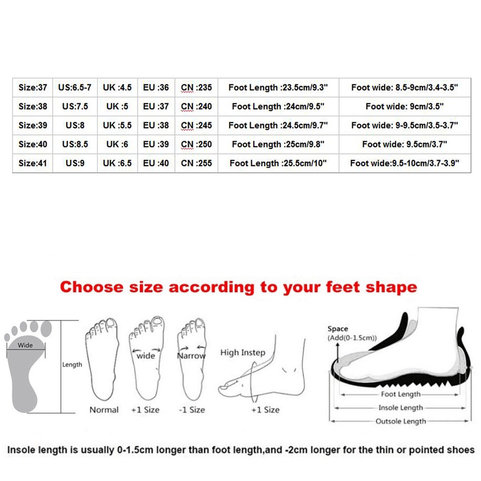 Теплое напоминание:Различные стили обуви, пожалуйста, выберите размер в соответствии с типом вашей стопы.