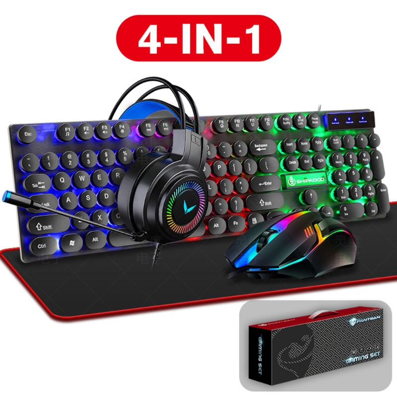 Игровая клавиатура, игровая мышь, игровая гарнитура, коврик для мыши: игровой набор включает 104 клавиши RGB радужной игровой клавиатуры, 4 цвета со светодиодной подсветкой игровая мышь, большой коврик для мыши, высокое качество звука и сильная шумоизоляция игровая гарнитура с микрофоном.