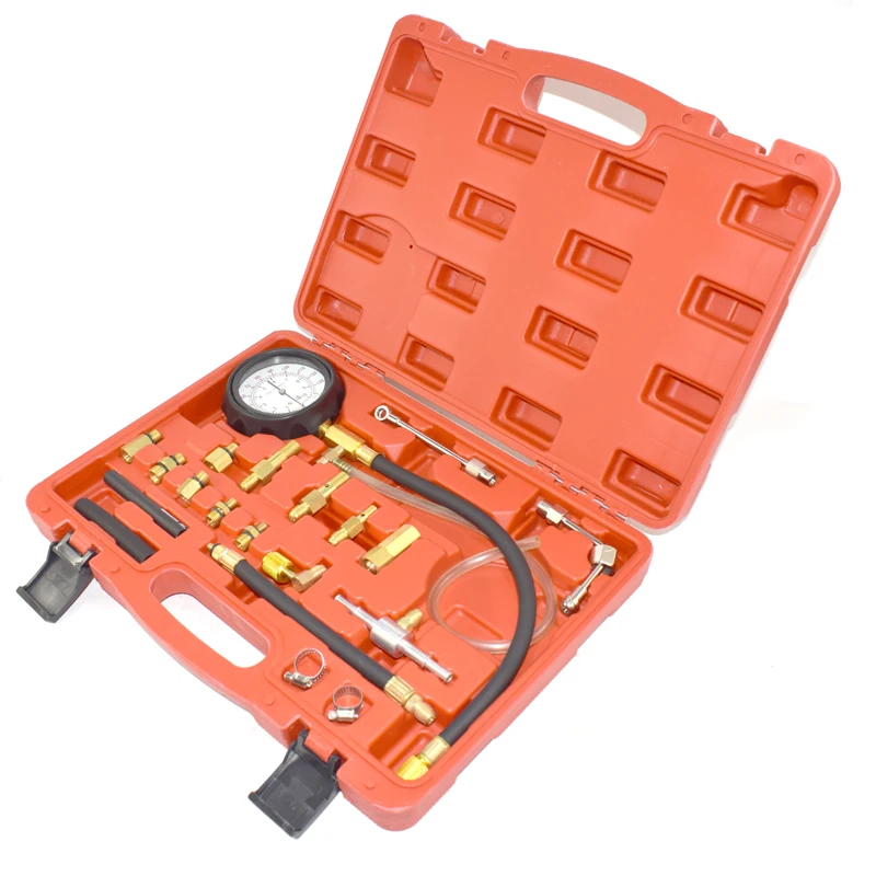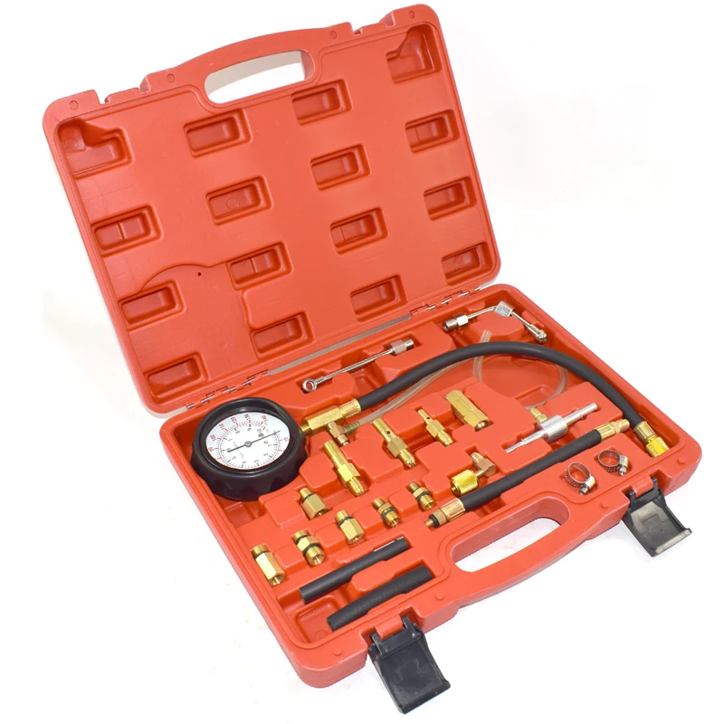 TU-114 датчик давления топлива авто диагностические инструменты для ТНВД тестерДетали продукции:TU-114 датчик давления топлива авто диагностические инструменты для ТНВД тестерОснащен манометром ø90мм с двумя весами (psi и бар), считывание от 0 ~ 140psi и 0 ~ 10 барВ комплект входит медный адаптер. Полный набор адаптеров и фитингов для современных систем впрыска топлива Schrader.Компоненты оснащены системой быстрого соединения и предохранительным клапаном для предотвращения случайного разряда топлива под давлением.Клапан сброса давления, оснащенный длинным сливным шлангом, обеспечивает безопасное восстановление топлива.