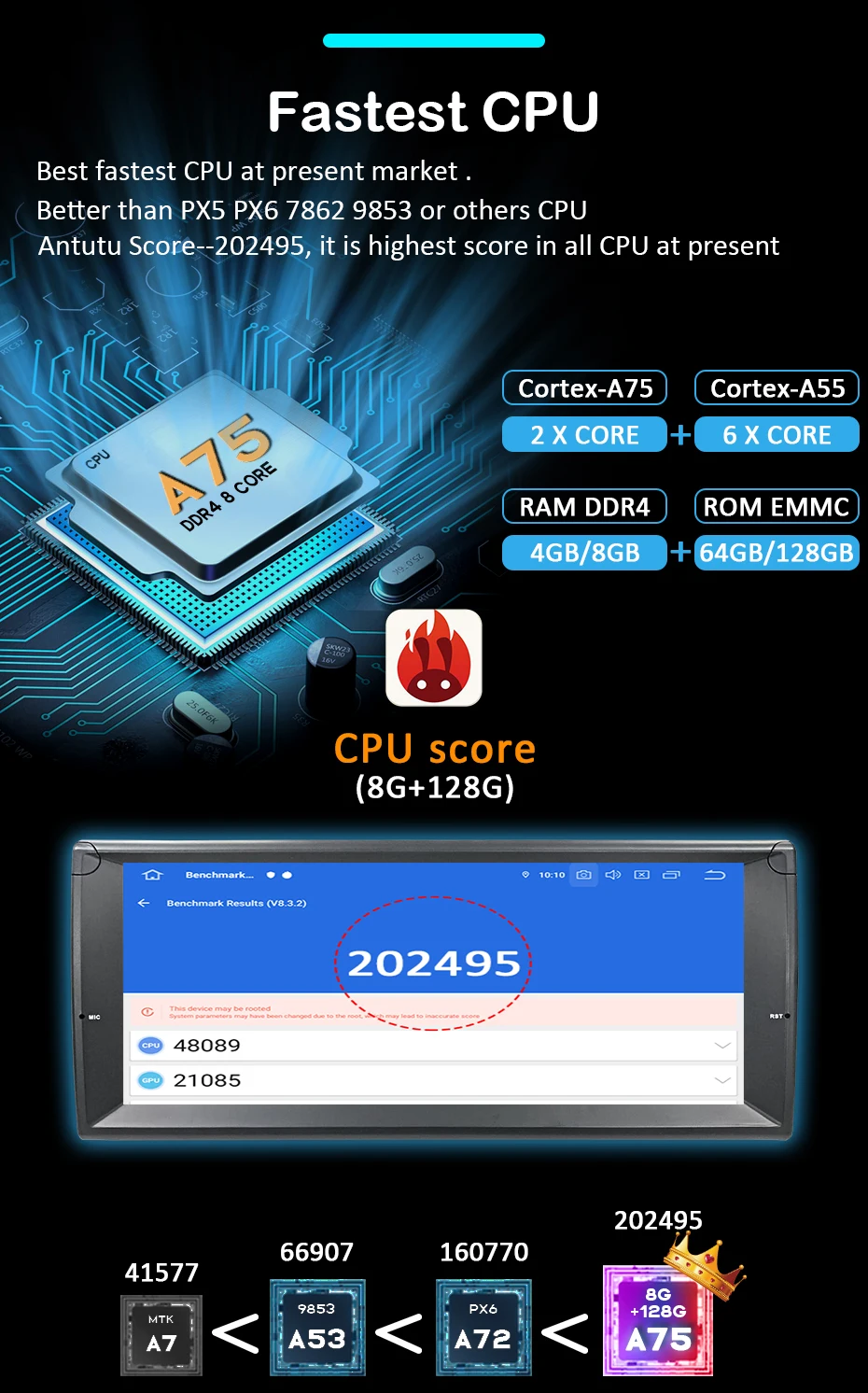 Antutu Score- 202495, это самый высокий балл во всех ЦП в настоящее время