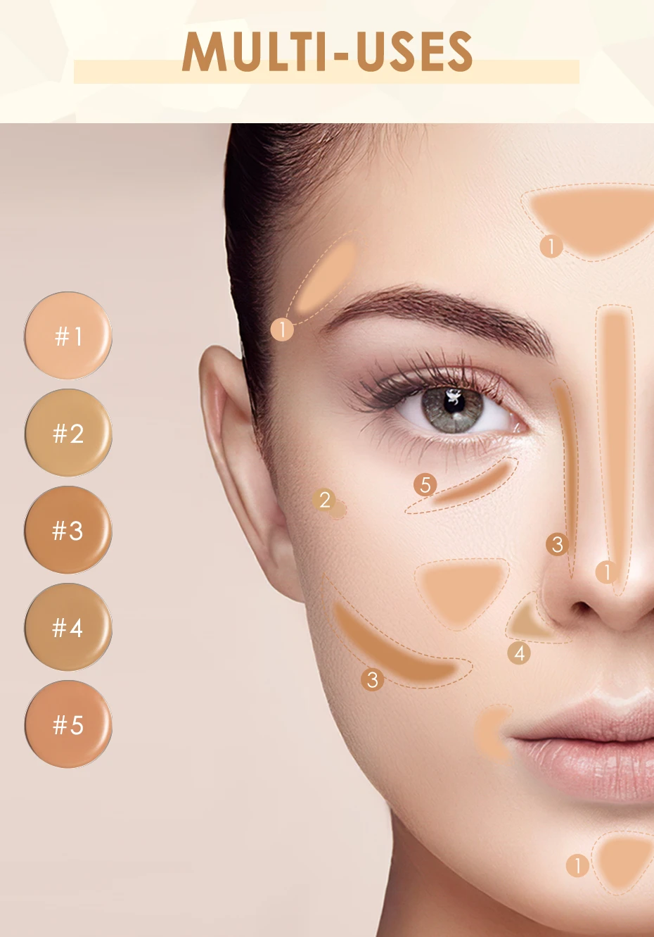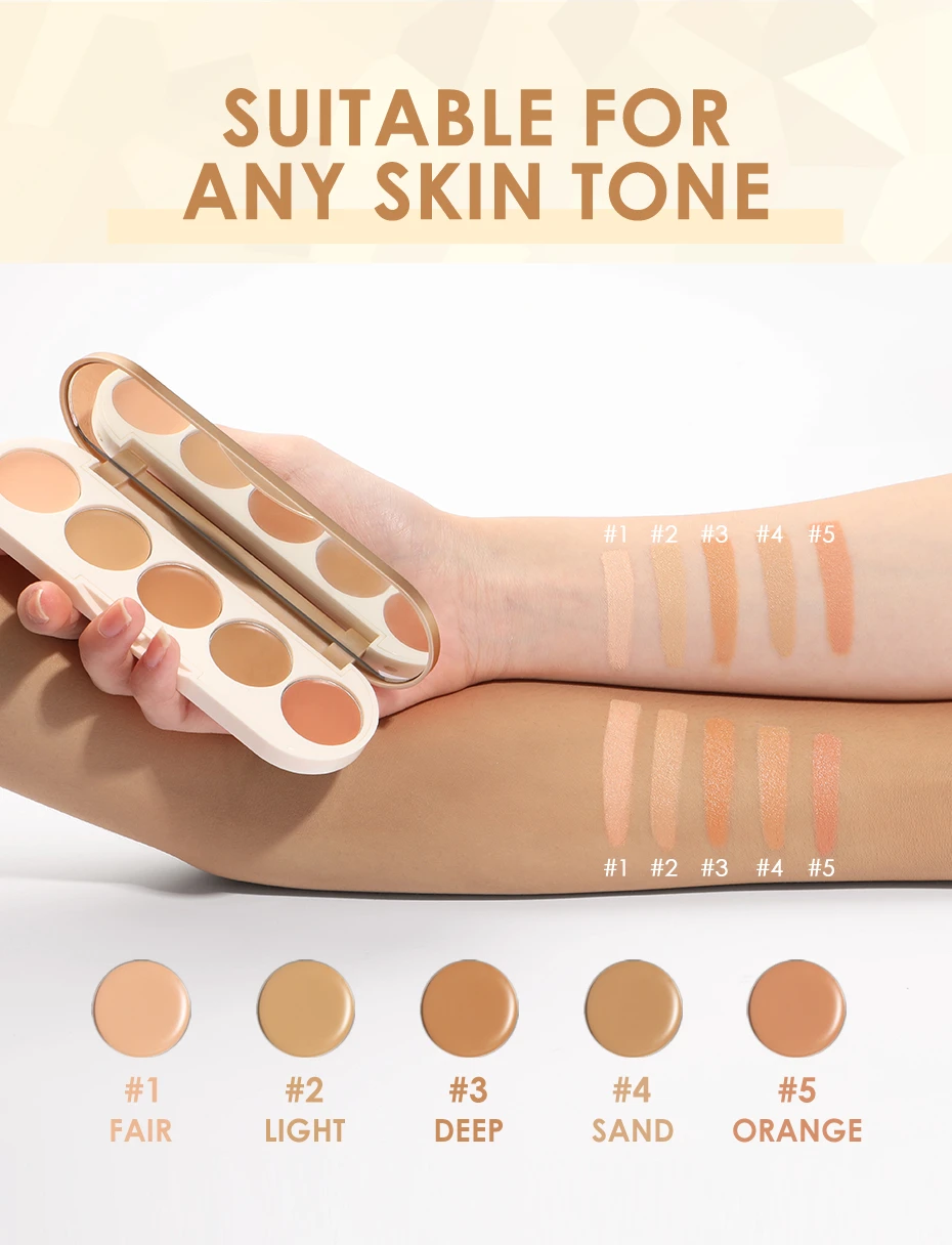 【 Мульти-Uses】 5 полезных цветов все в одном, помогая покрыть дефекты, такие как покраснение, темные круги, шрамы, темные пятна и пигментация, удовлетворить все ваши потребности, чтобы покрыть пятна.