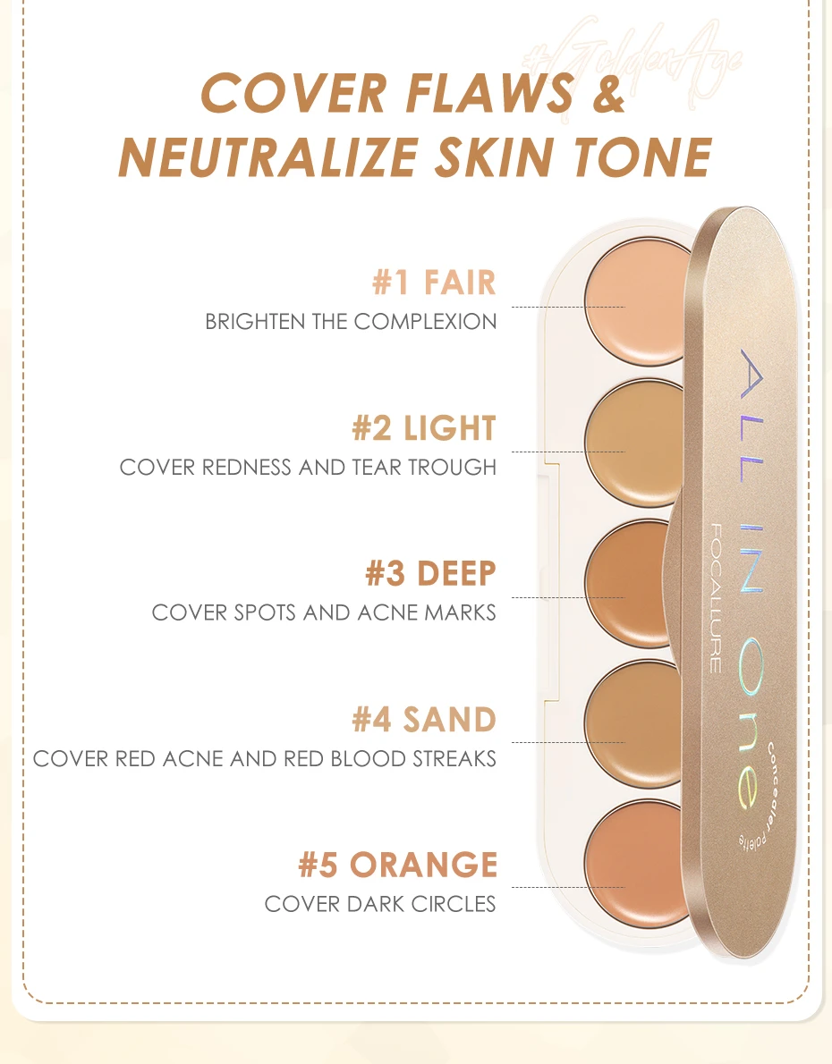 Focallure # GoldenAge 5 в 1 мульти использует палитру консилера, удовлетворить все ваши потребности, чтобы покрыть пятна.