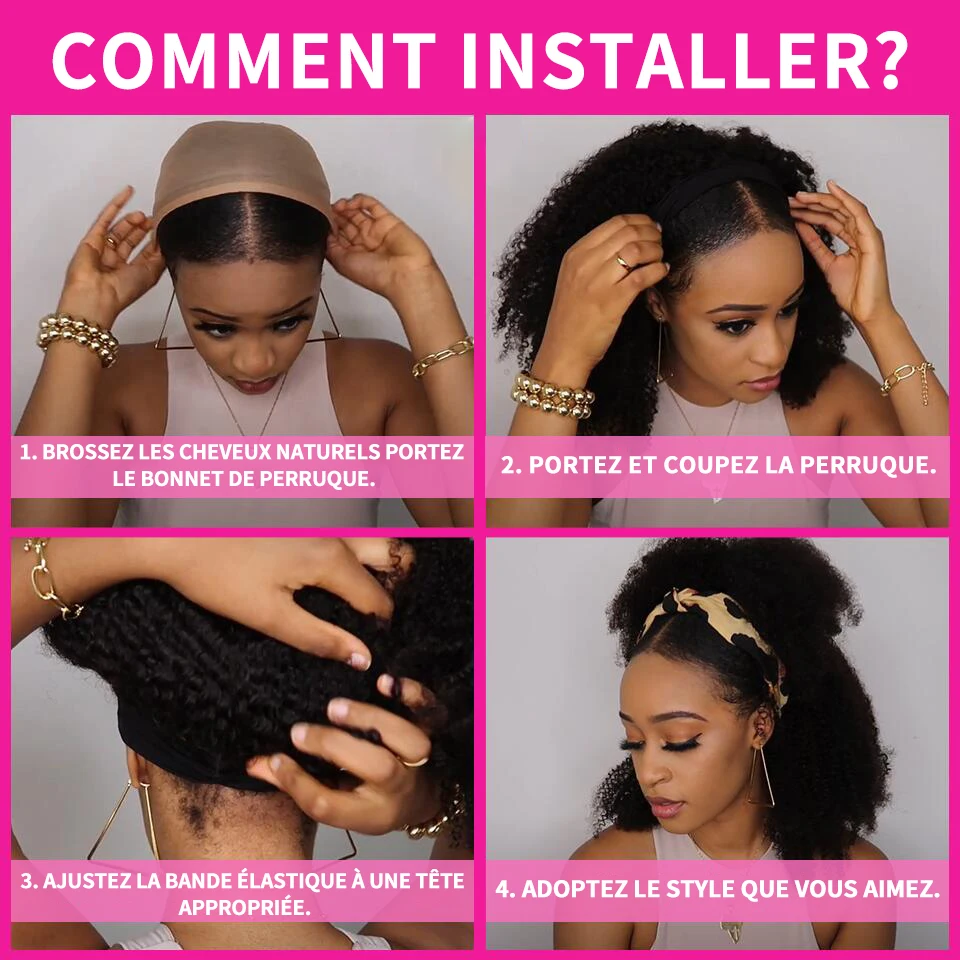 2. Высокое качество, бандо, перруке de cheveux humains, doux, sain, sans odeur, sans enchevêtrement, sans perte. Peut être lissé, bouclé, blanchi, teint et coiffé comme vos propres cheveux.