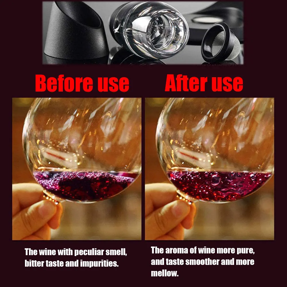 Уникальный дизайн, встроенный сетчатый фильтр, может сделать вино более тонким и ускорить процесс затухания вина.