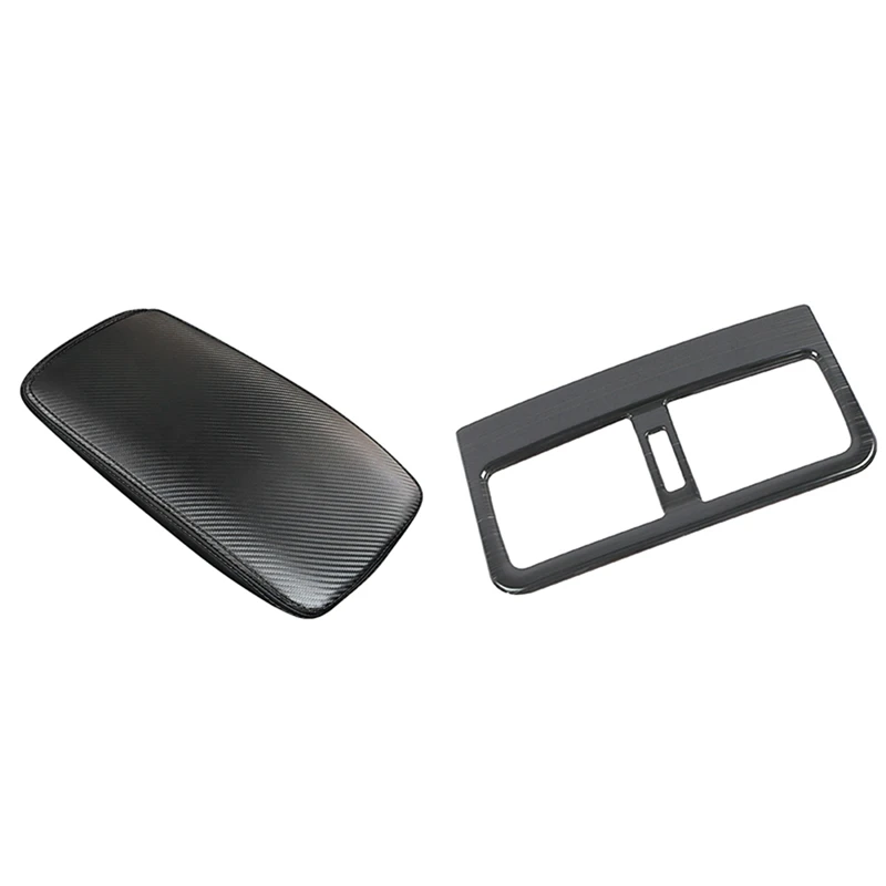 2 Pcs Car Accessories: 1 Pcs Center Console Leather Armrest Cover & 1 Pcs Car Rear Air Outlet Decoraiton Cover Trim