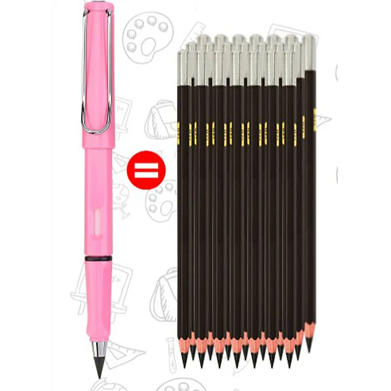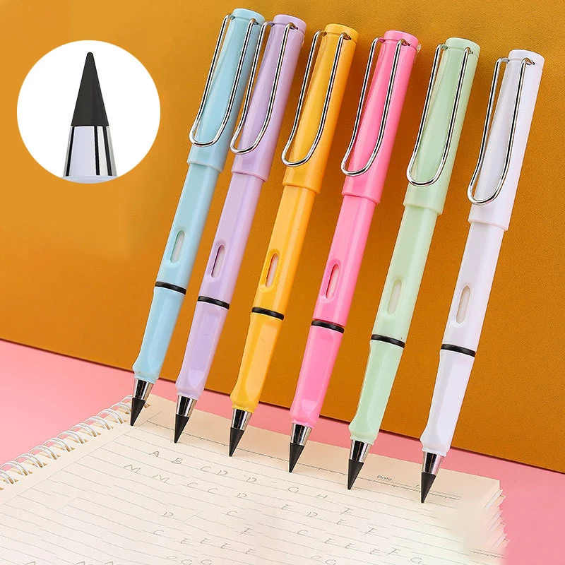 Особенности вечного карандаша: наконечник изготовлен из металла, который маленький и его цвет похож на обычные карандаши, он может писать плавно, И почерк легко стереть с помощью ластика. Длинный ластик внутри, легко стирается.