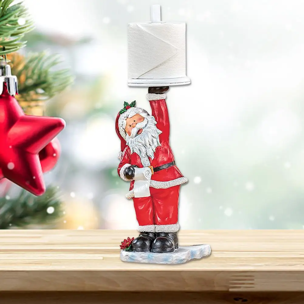 1、Special Design: This tissue holder has a unique design, using the image of Santa Claus, which means that Santa Claus is happy to extend a helping hand, lift a roll of paper, and store up to two additional rolls of paper behind him.