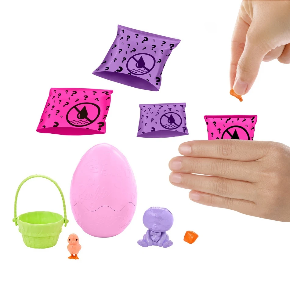 Набор Barbie Пасхальное яйцо с питомцем в непрозрачной упаковке (сюрприз) GVK58. Набор-сюрприз с питомцем Барби подарит множество радостных моментов! Милый зверек спрятан в пасхальном яйце, и его облик остается загадкой, пока упаковка не будет открыта! Внутри яйца спрятаны 4 непрозрачных пакетика, в которых вы найдете фигурку питомца и 3 сюрприза! Каждый питомец носит галстук-бабочку, но какого же цвета его ушки? Это ещё один секрет! Всего может быть более 20 цветовых комбинаций! Соберите всех маленьких друзей Барби для бесконечного веселья! Цвета и дизайн могут отличаться от изображений. Barbie и связанные с ним товарные знаки, и фирменный стиль принадлежат Mattel.