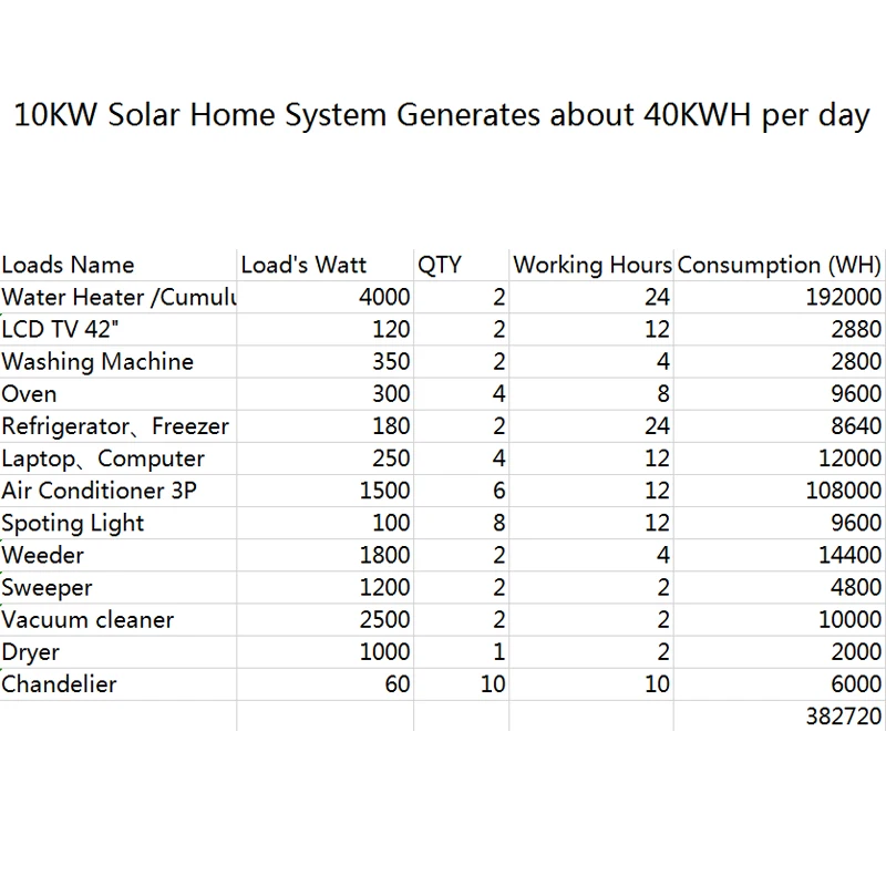 Эта система генерирует Макс. Мощность: 50 кВт · ч/день на основе 5 часов пикового солнечного времени