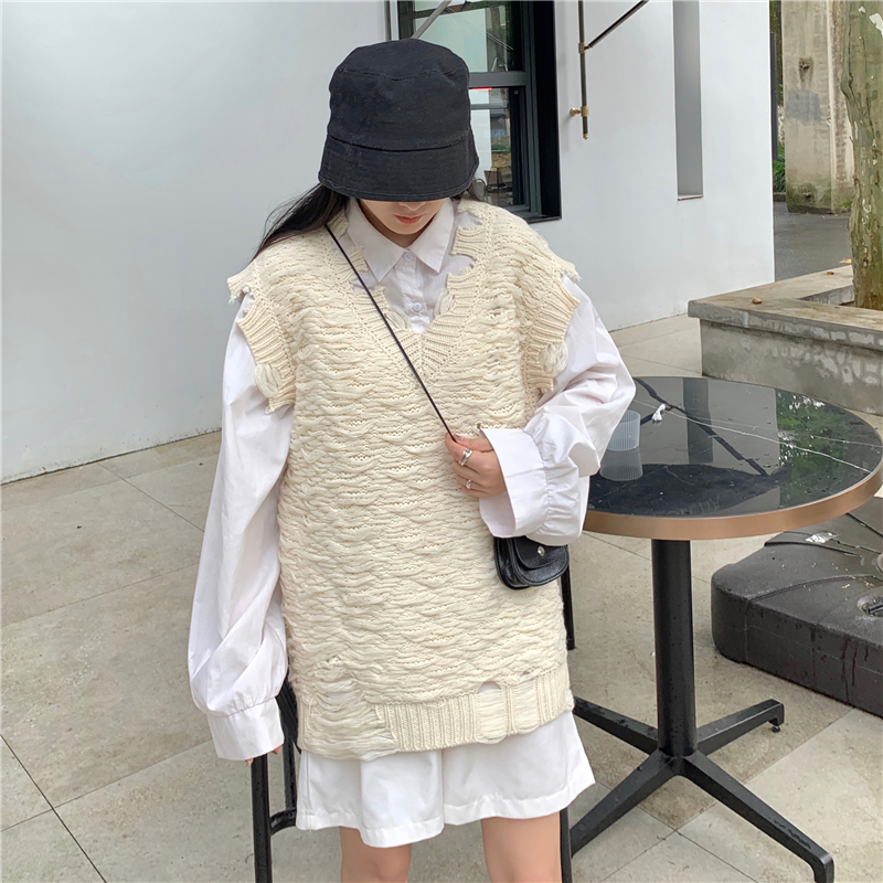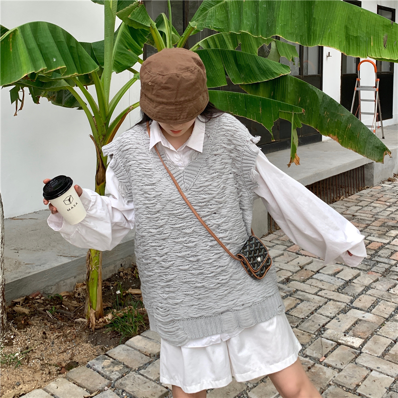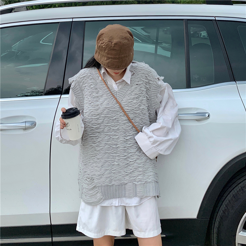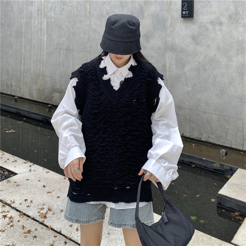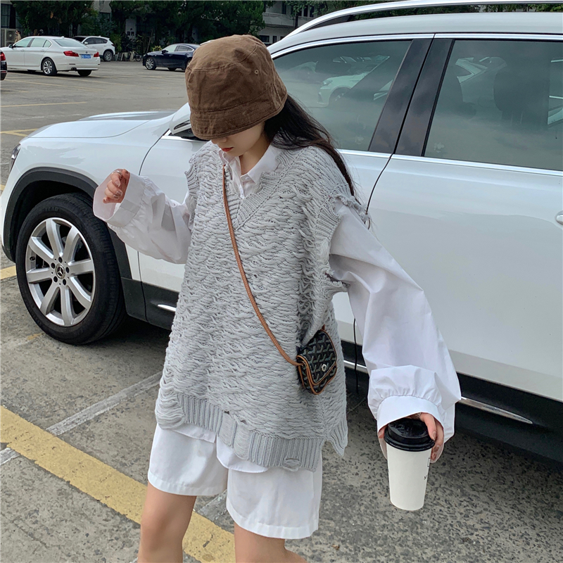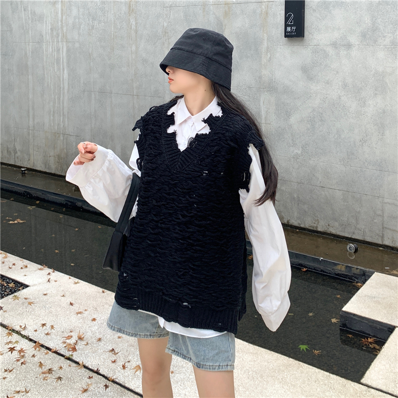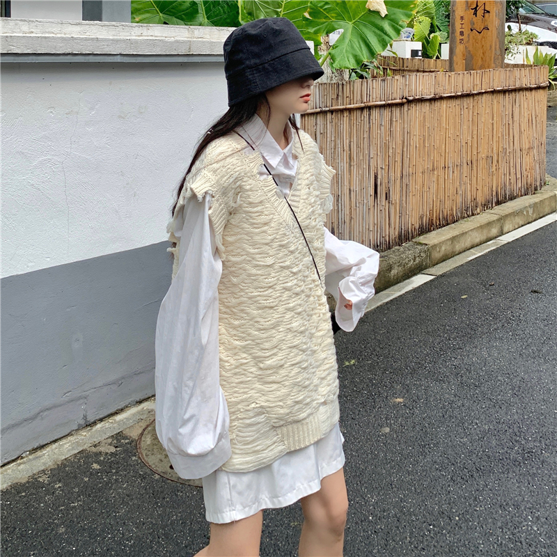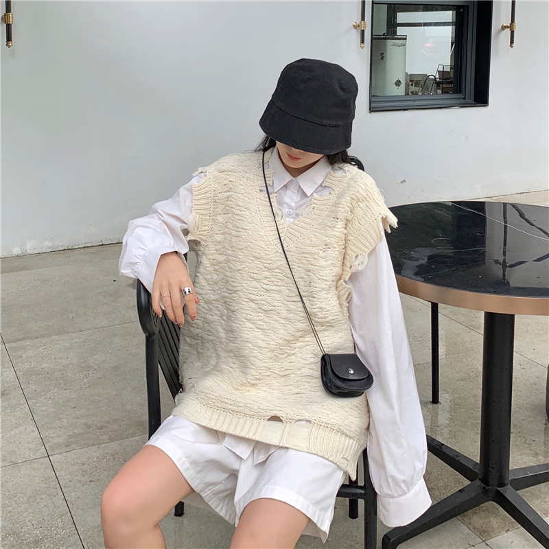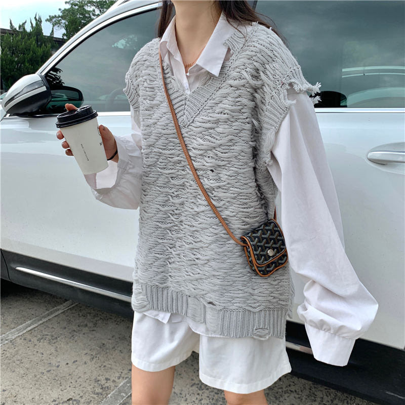 2021 осенне-зимний новый женский нищий жилет свитер Асимметричный без рукавов с v-образным вырезом свободный двухслойный вязаный свитер