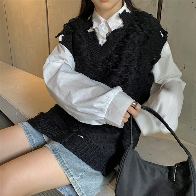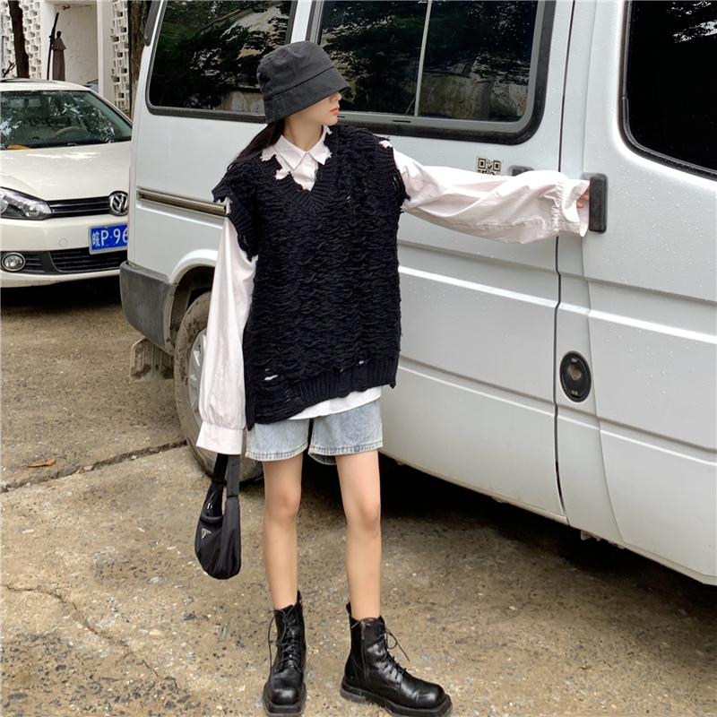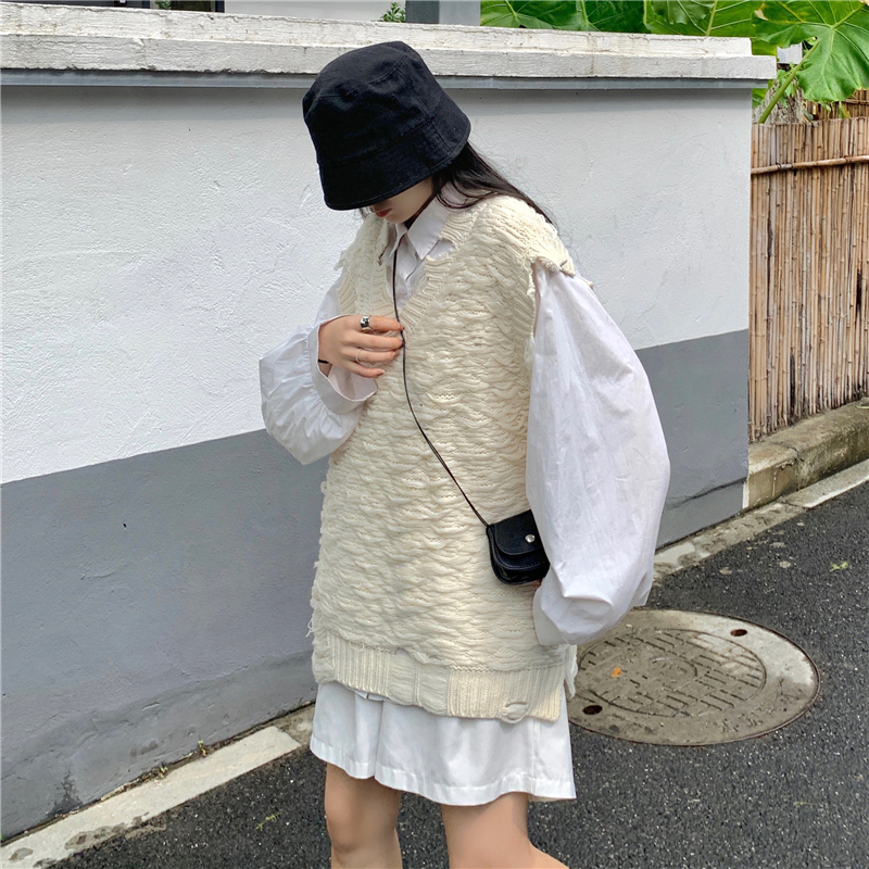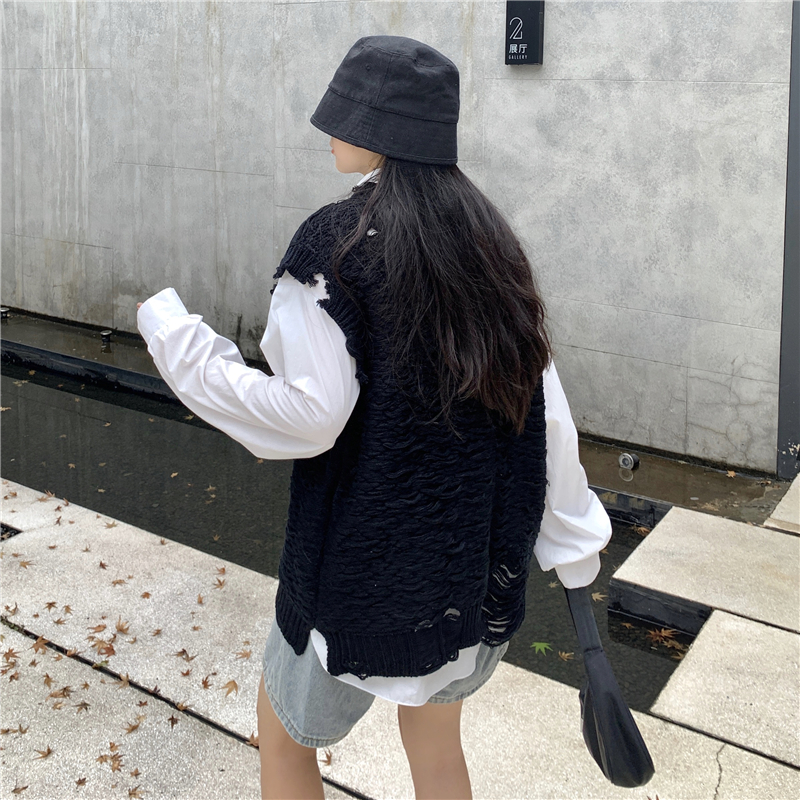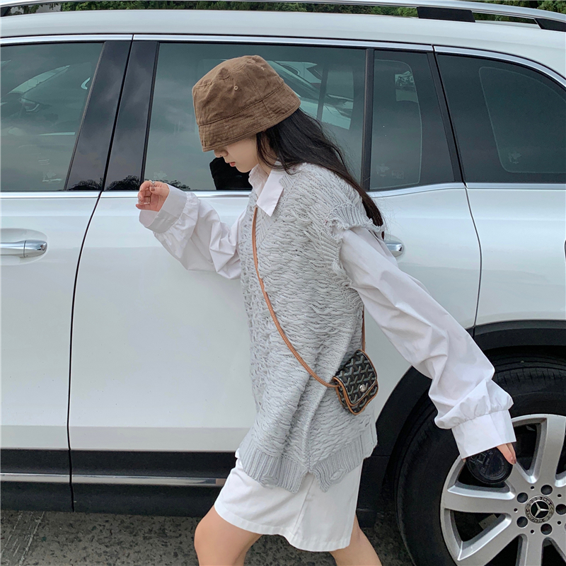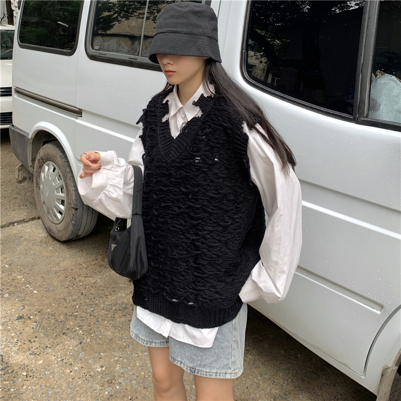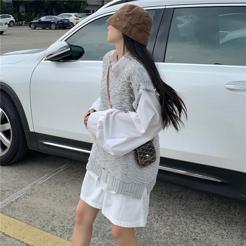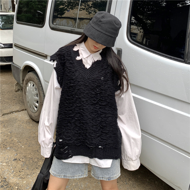 2021 осенне-зимний новый женский нищий жилет свитер Асимметричный без рукавов с v-образным вырезом свободный двухслойный вязаный свитер