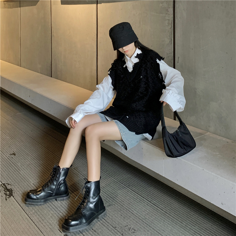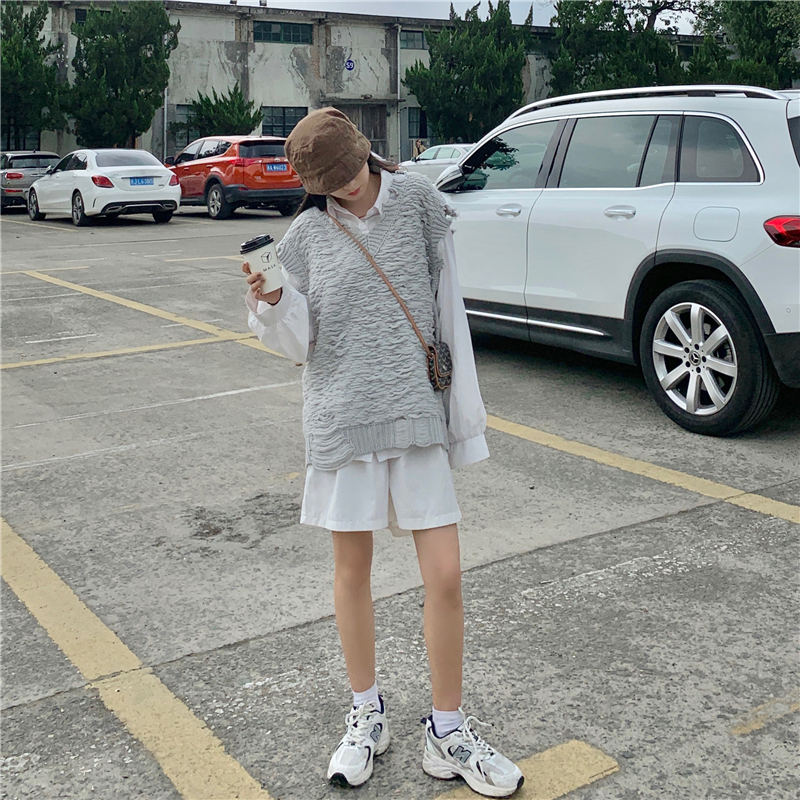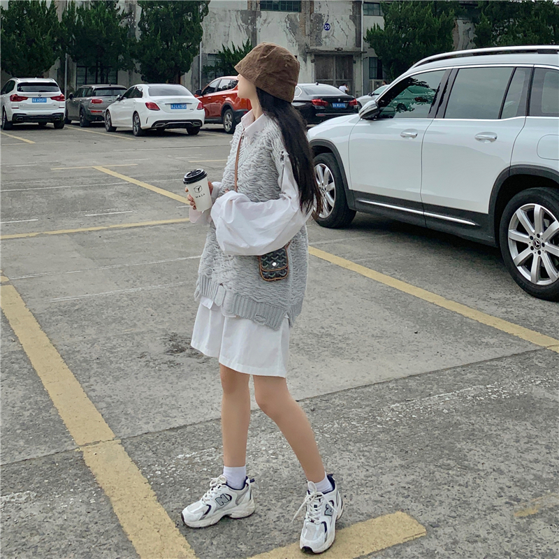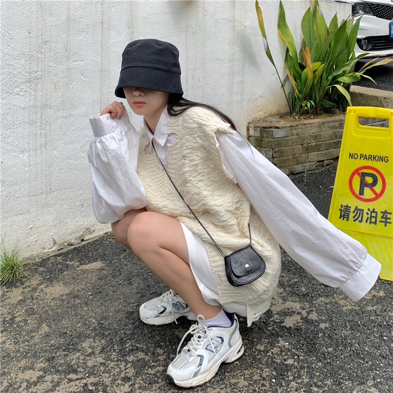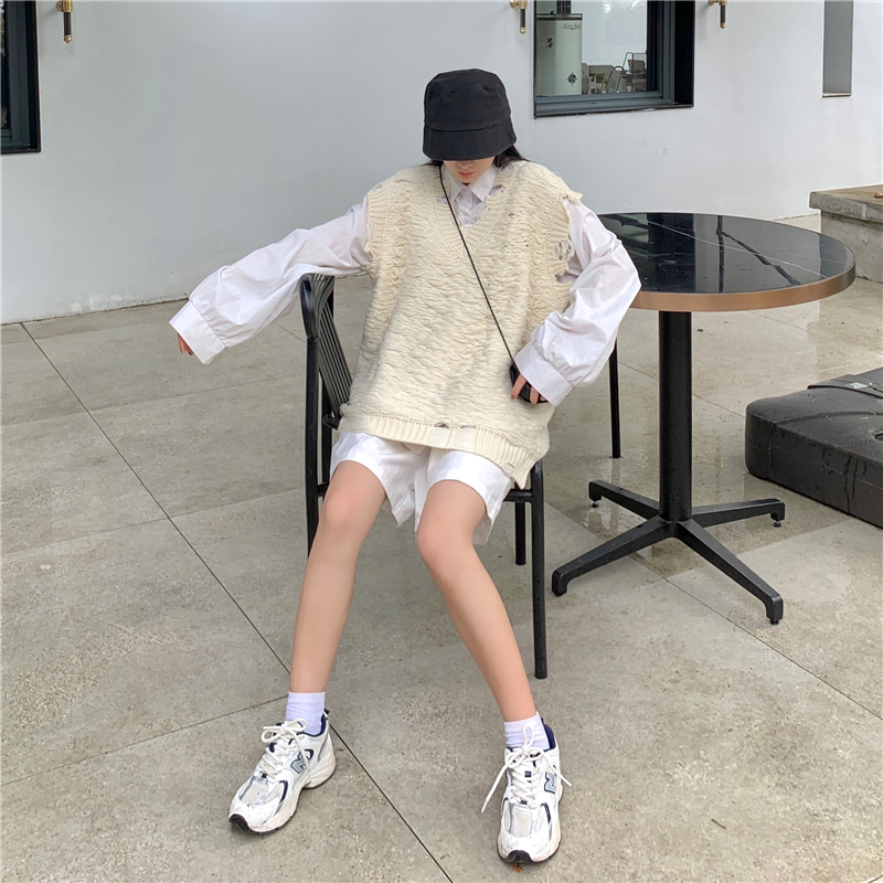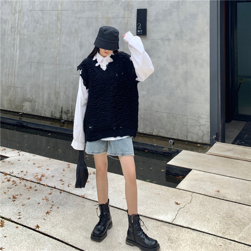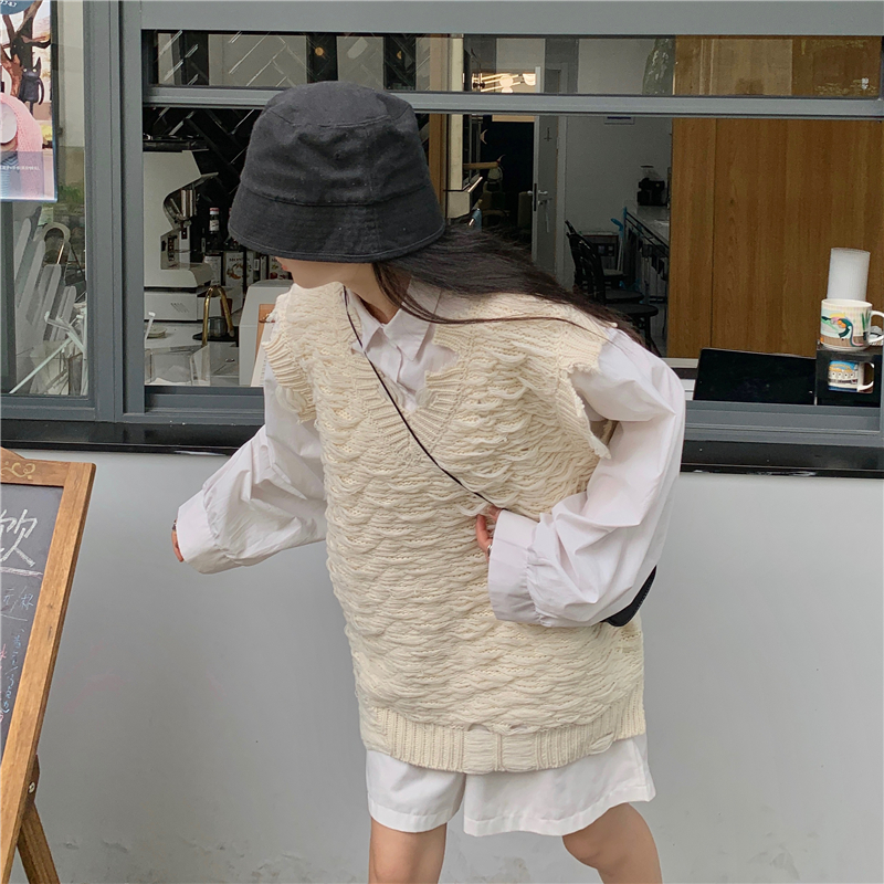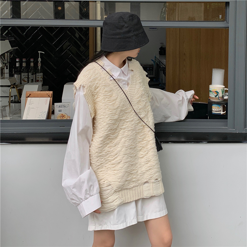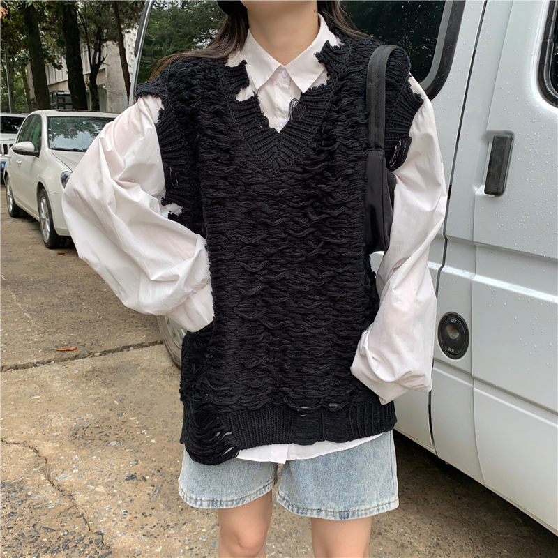 2021 осенне-зимний новый женский нищий жилет свитер Асимметричный без рукавов с v-образным вырезом свободный двухслойный вязаный свитер