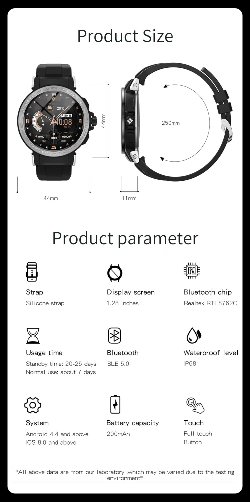System requirements:Android 4.4 and above, IOS 8.0 and above, bluetooth 5.0 support