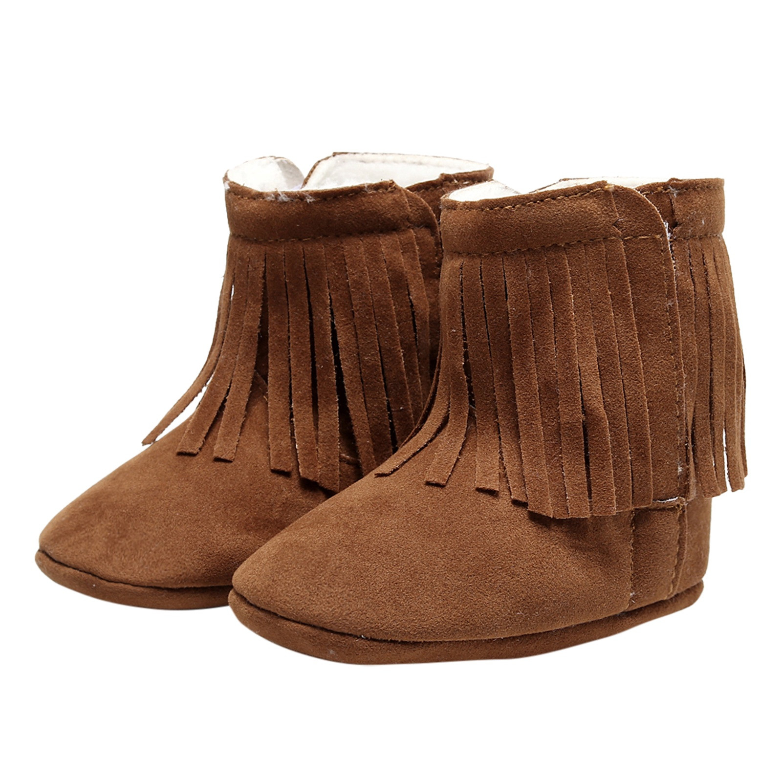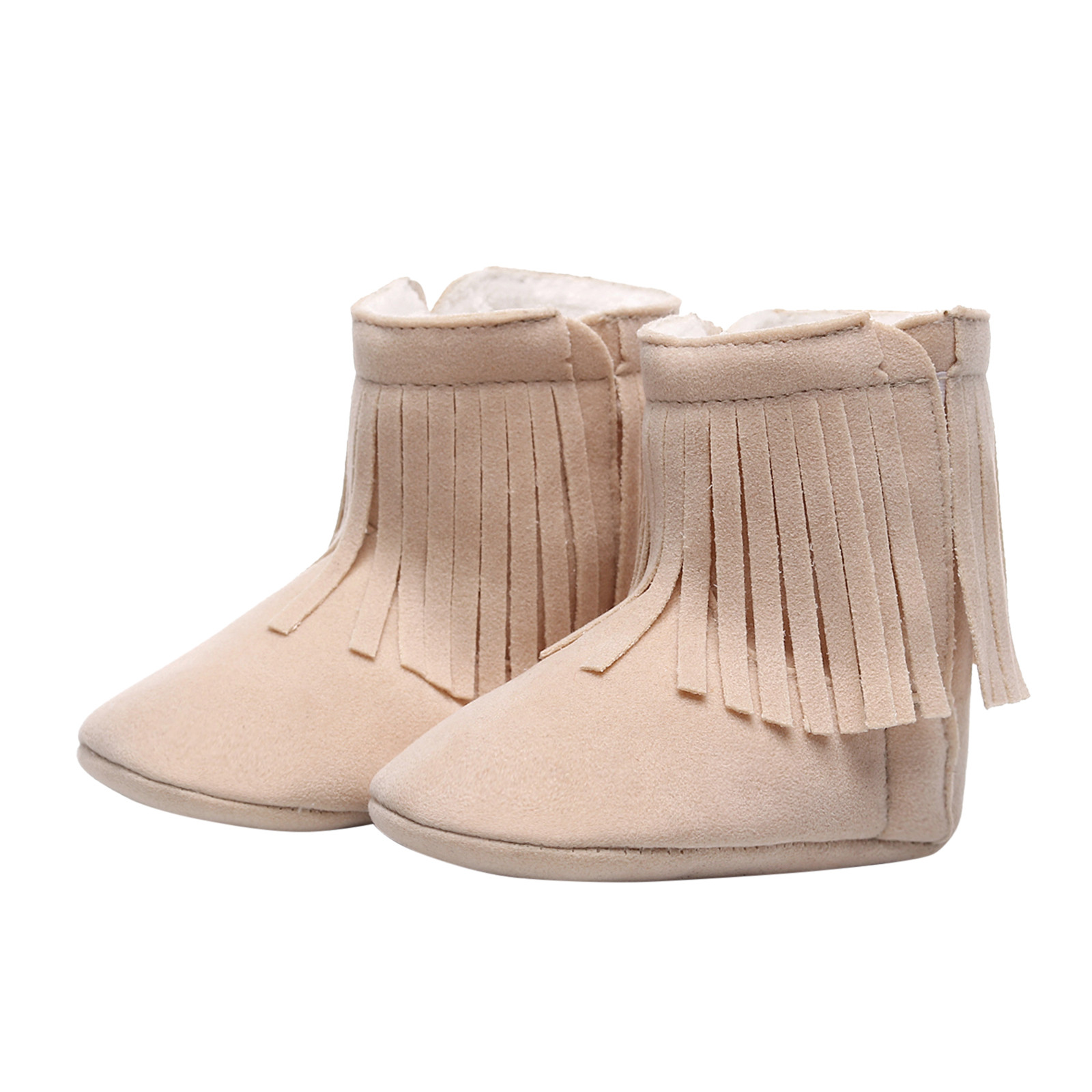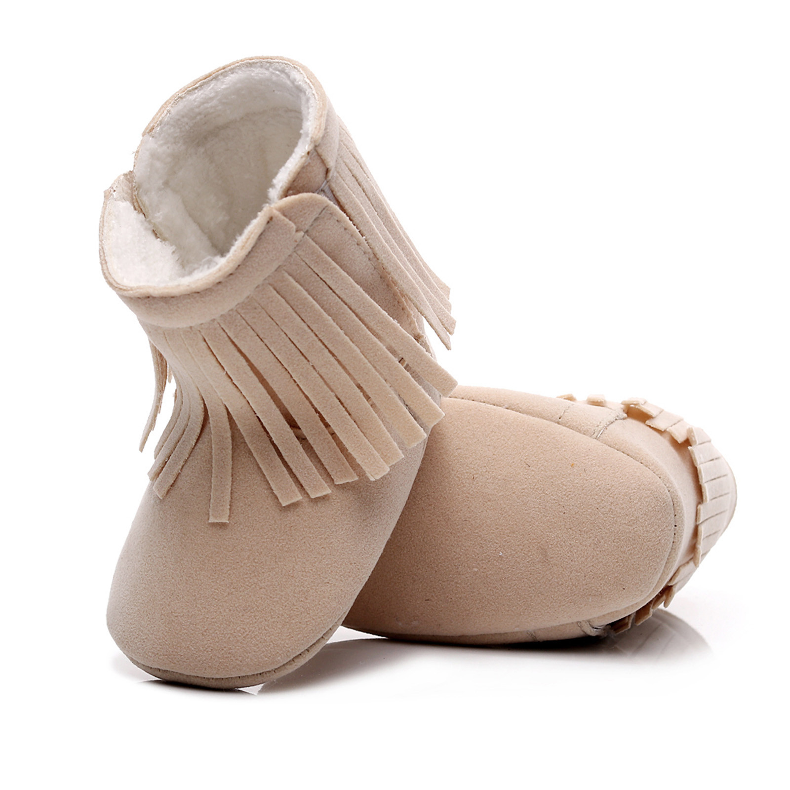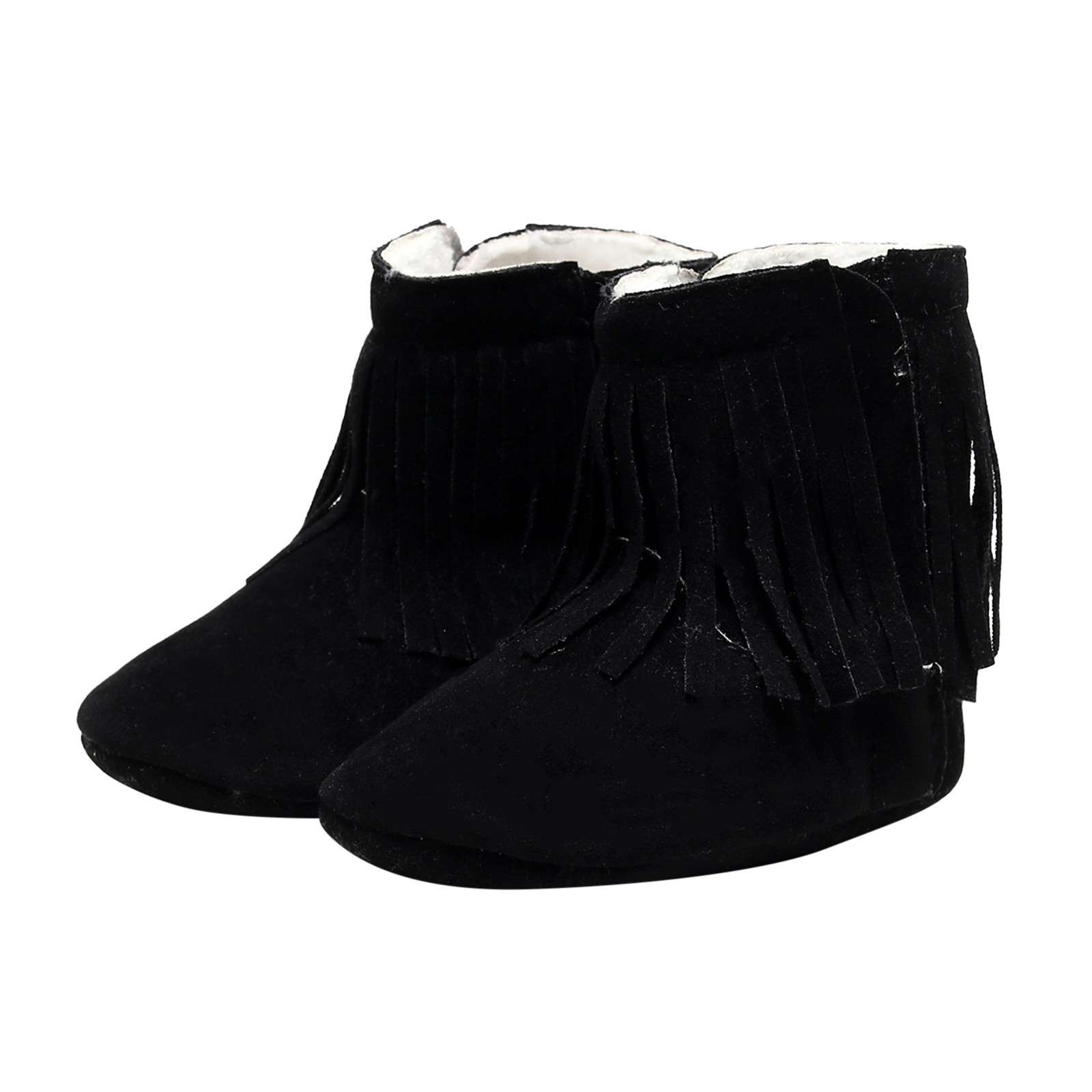 Мягкие плюшевые зимние ботинки с кисточками для маленьких девочек; Теплая хлопковая обувь для первых шагов