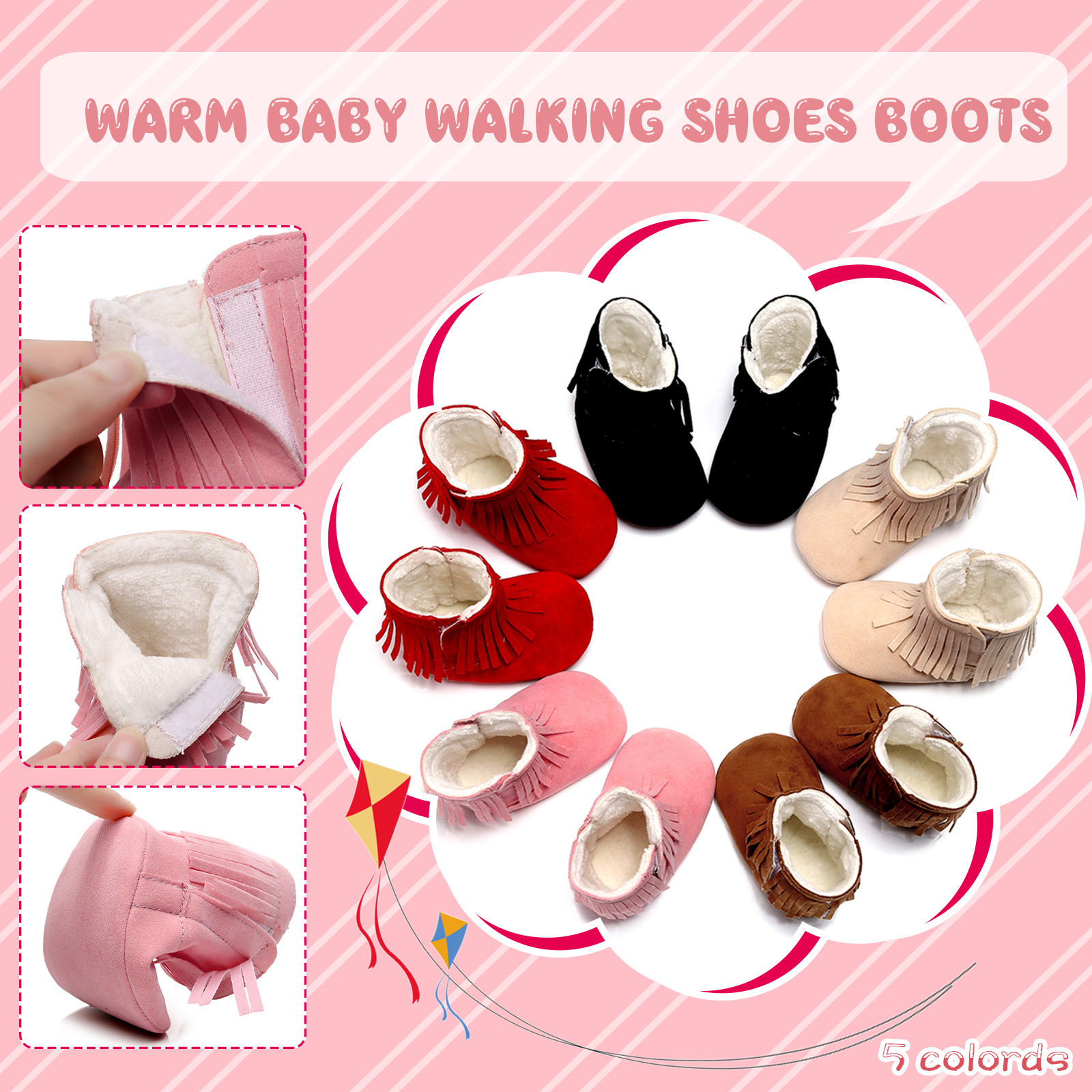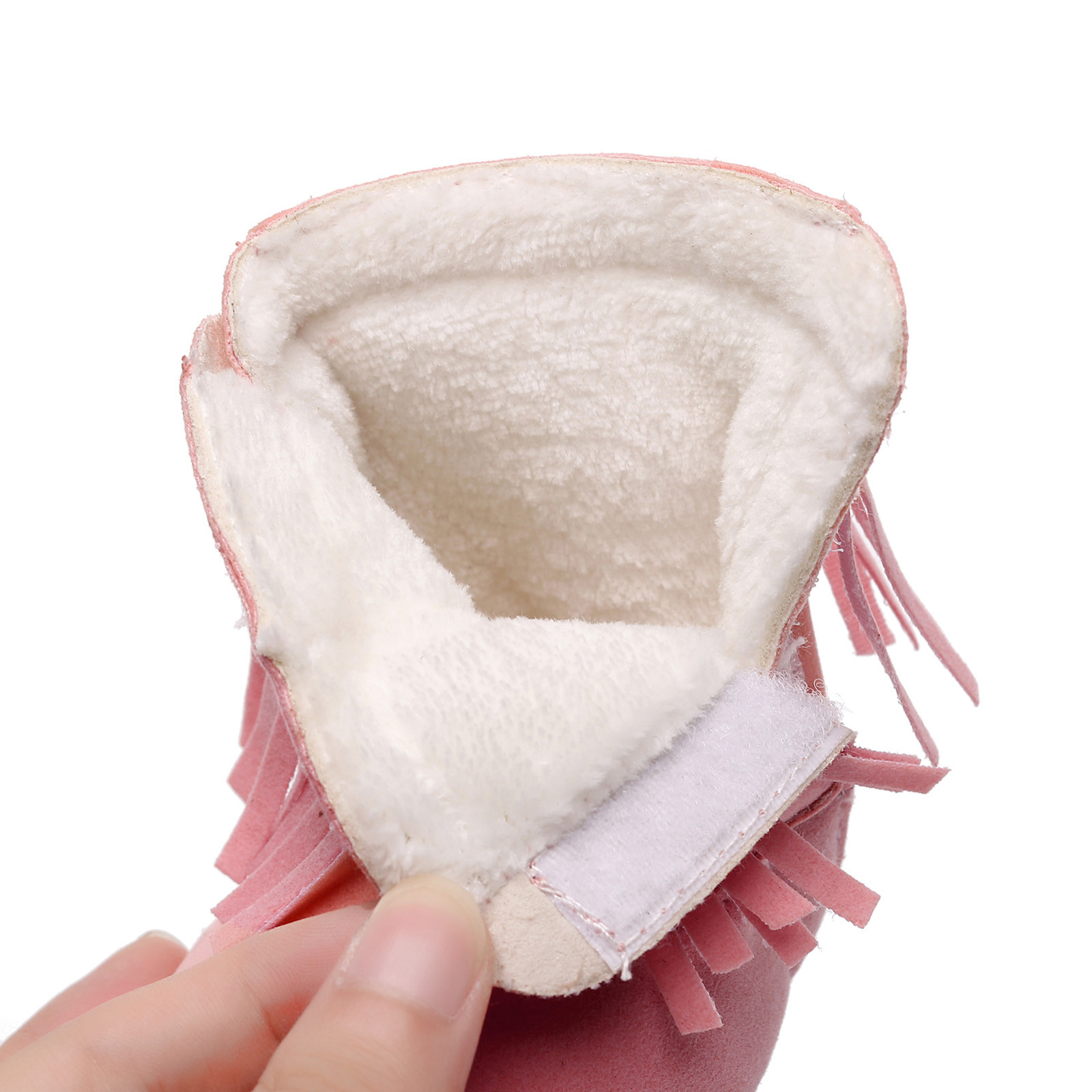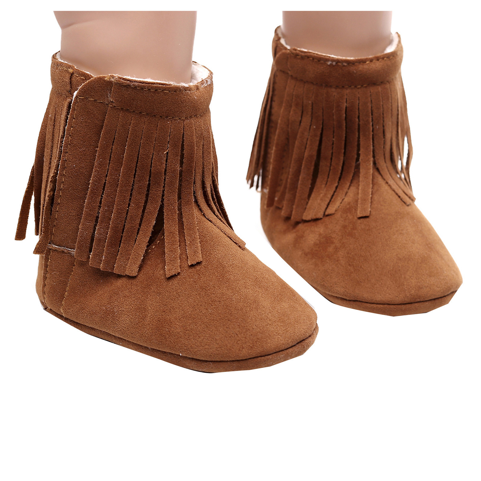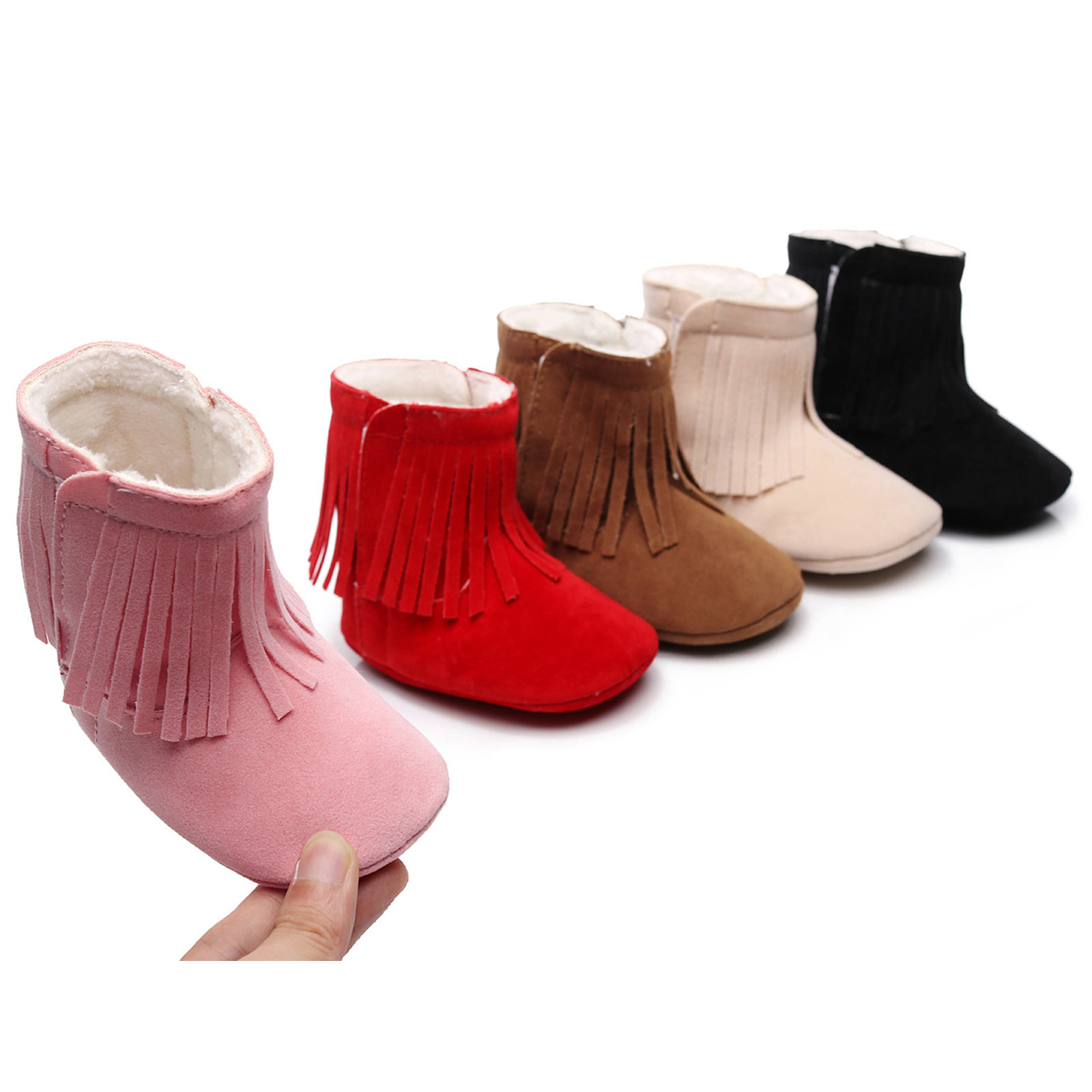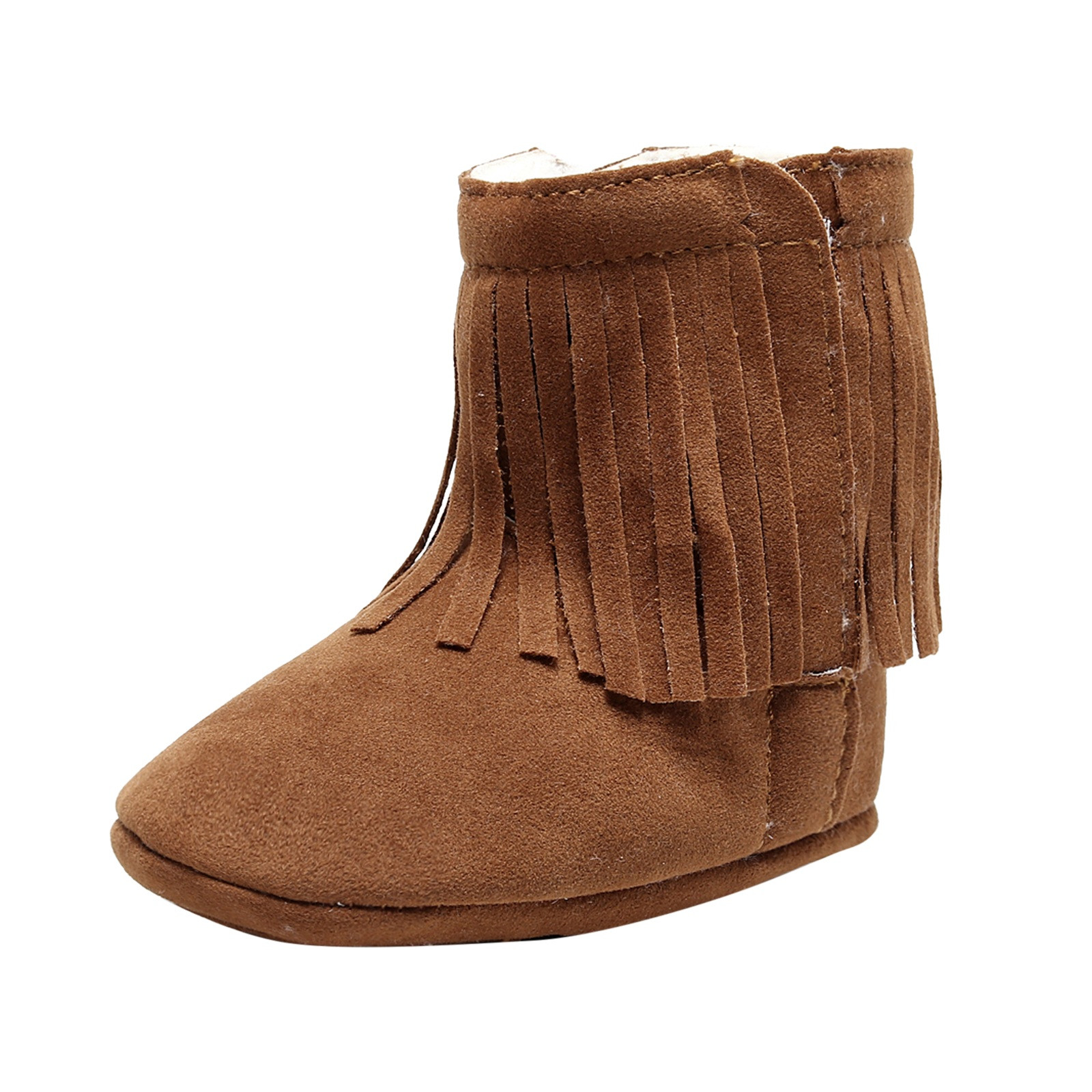 Мягкие плюшевые зимние ботинки с кисточками для маленьких девочек; Теплая хлопковая обувь для первых шагов