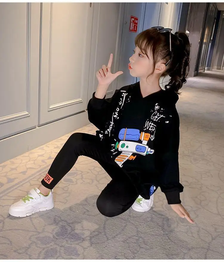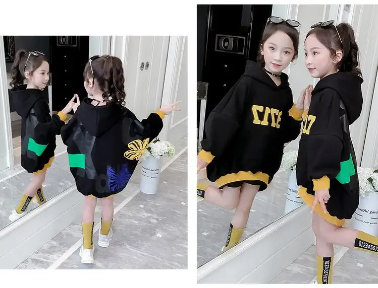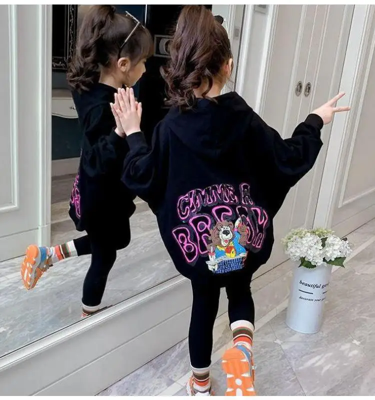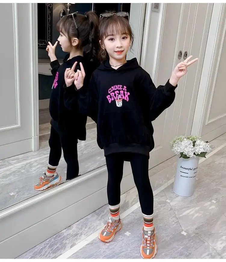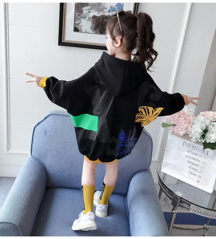 Новинка; Сезон весна-осень; Милые модные пуловеры с капюшоном для девочек; Спортивная толстовка для подростков; Детская толстовка с буквенным принтом