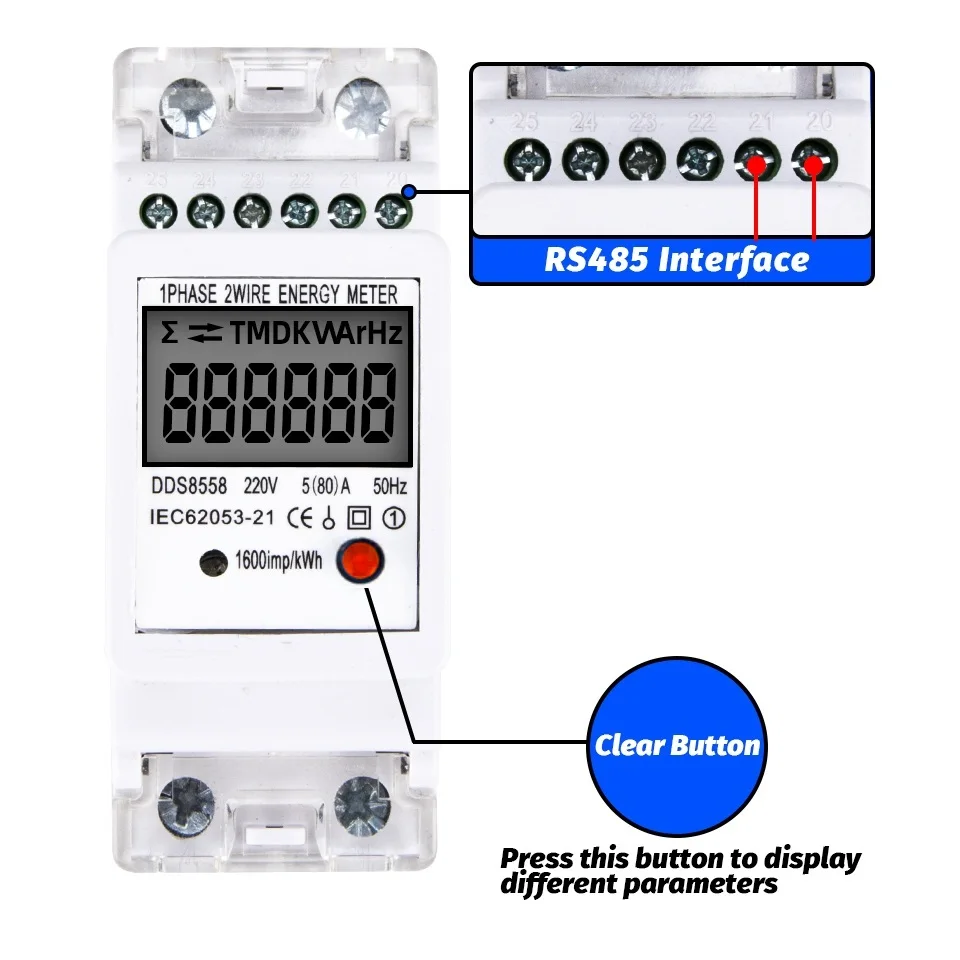 DDS8558 2021Новый Многофункциональный AC 220V-230V 5(80)A RS485 Mudbus-RTU kWh однофазный Потребляемая мощность ватт счетчик энергии din-рейка подсветка