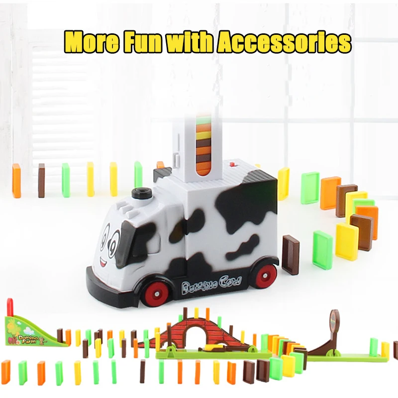 Automatic Laying Domino Brick Kids Train Car Set Sound Light Colorful Dominoes Blocks Game Educational DIY Plastic Toy Set