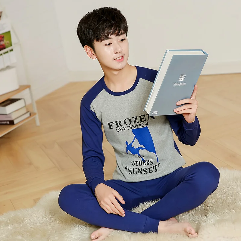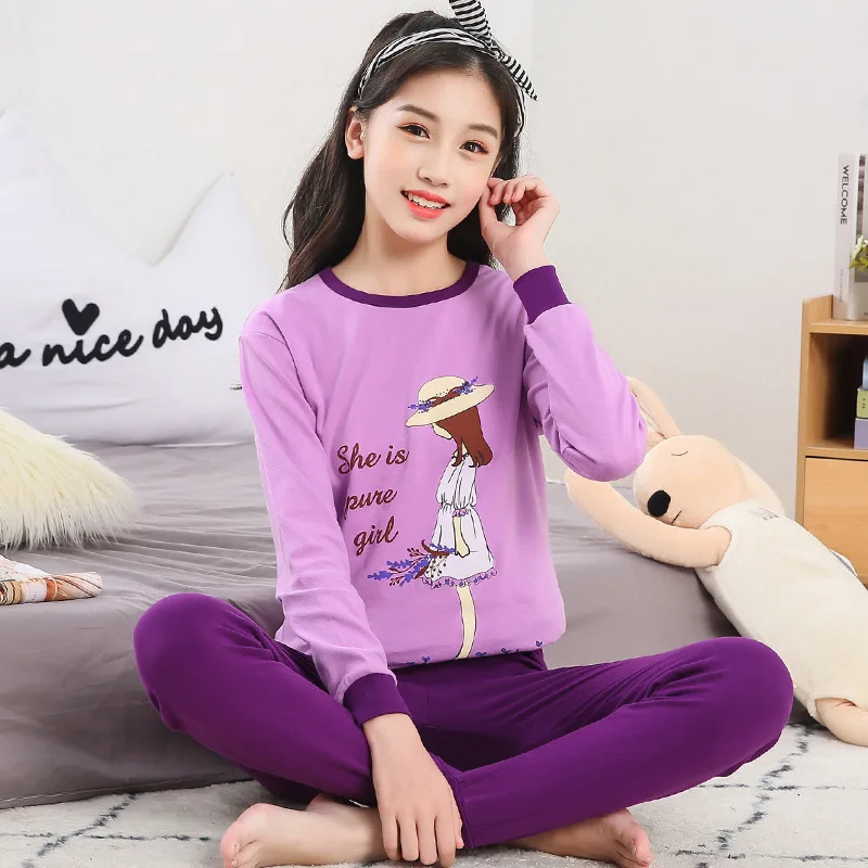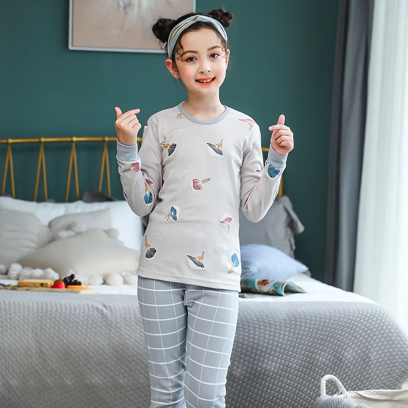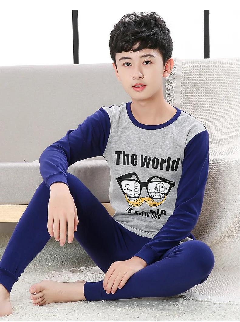 Осенне-зимние хлопковые пижамы для мальчиков и девочек комплекты одежды для сна для подростков детское нижнее белье детская одежда для сна с длинными рукавами домашняя одежда