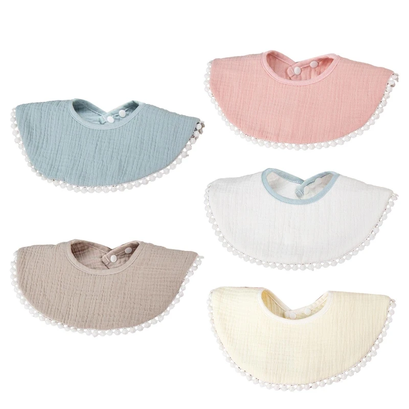 Детский нагрудник из крепового кружева для кормления младенцев, сплошной цвет, чистый хлопок, регулируемый слюнявчик, полотенце, дышащий фартук для новорожденных