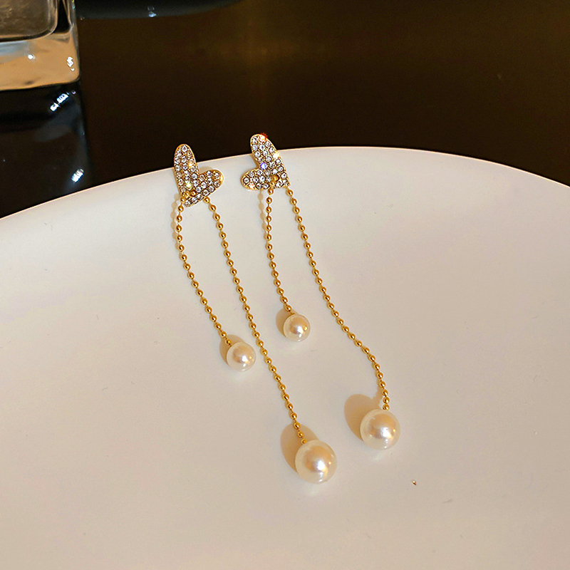 Серьги-подвески женские с жемчужными шариками и бантом | Украшения аксессуары