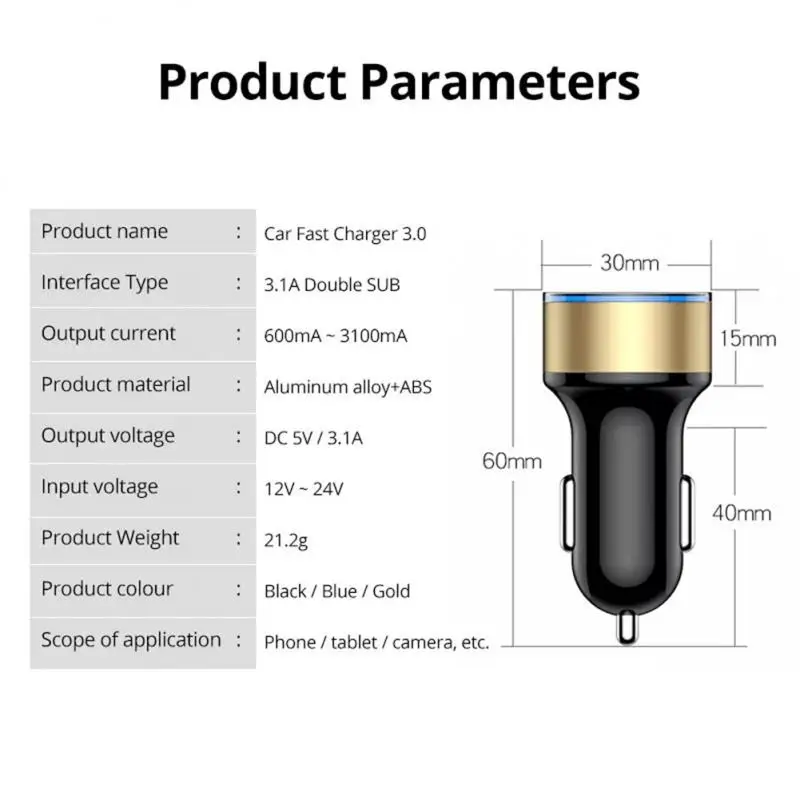 Название продукта: автомобильное зарядное устройство с двумя портами USB