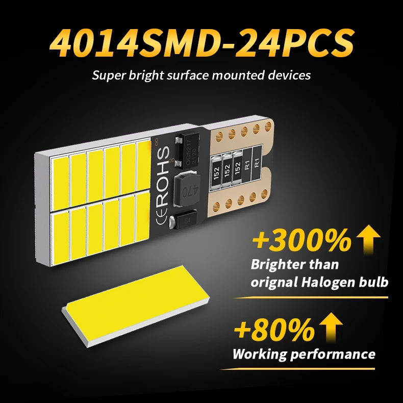 2x T10 W5W 4014 24SMD Автомобильный светодиодный светильник Canbus Авто Клиренс клиновидный боковой светильник Интерьер Купол лампы для чтения без ошибок 6000K белый