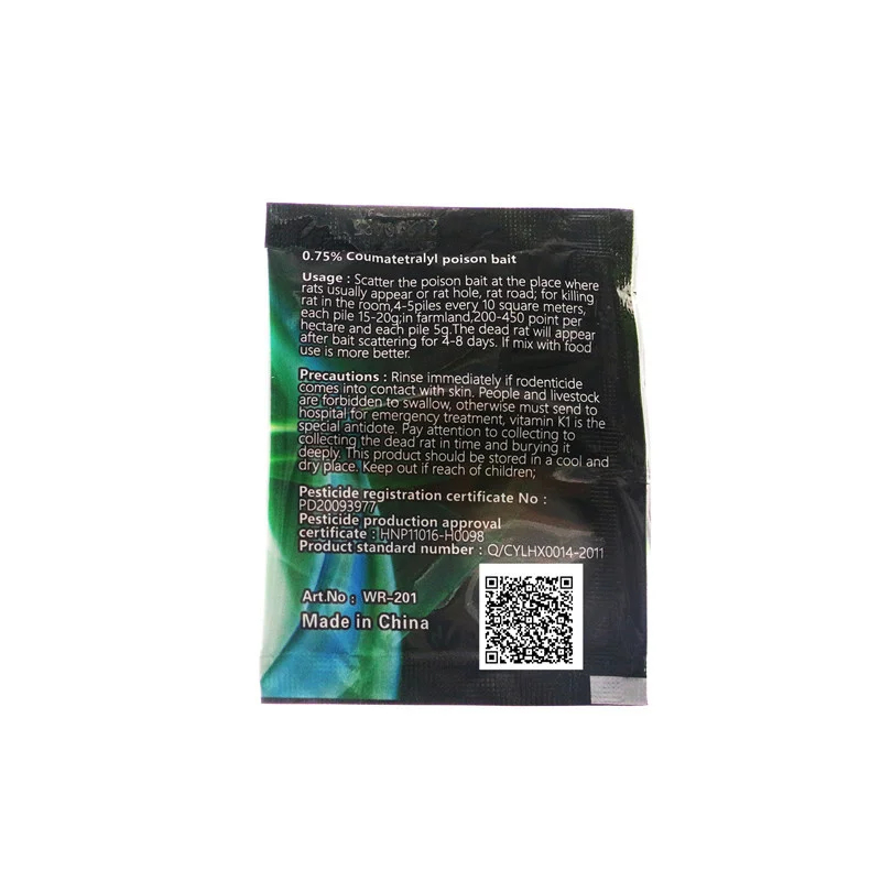 Краску сразу же, если родентицид соприкасается с кожей. Людям и животным запрещено глотать, в противном случае необходимо отправить в госпиталь для экстренного лечения, vitaminK1 является специальным противоядием. Обратите внимание, чтобы собрать мертвой крысы во времени и глубоко Зарыть его. Этот продукт должен храниться в прохладном и сухом месте. Держите подальше от детей!