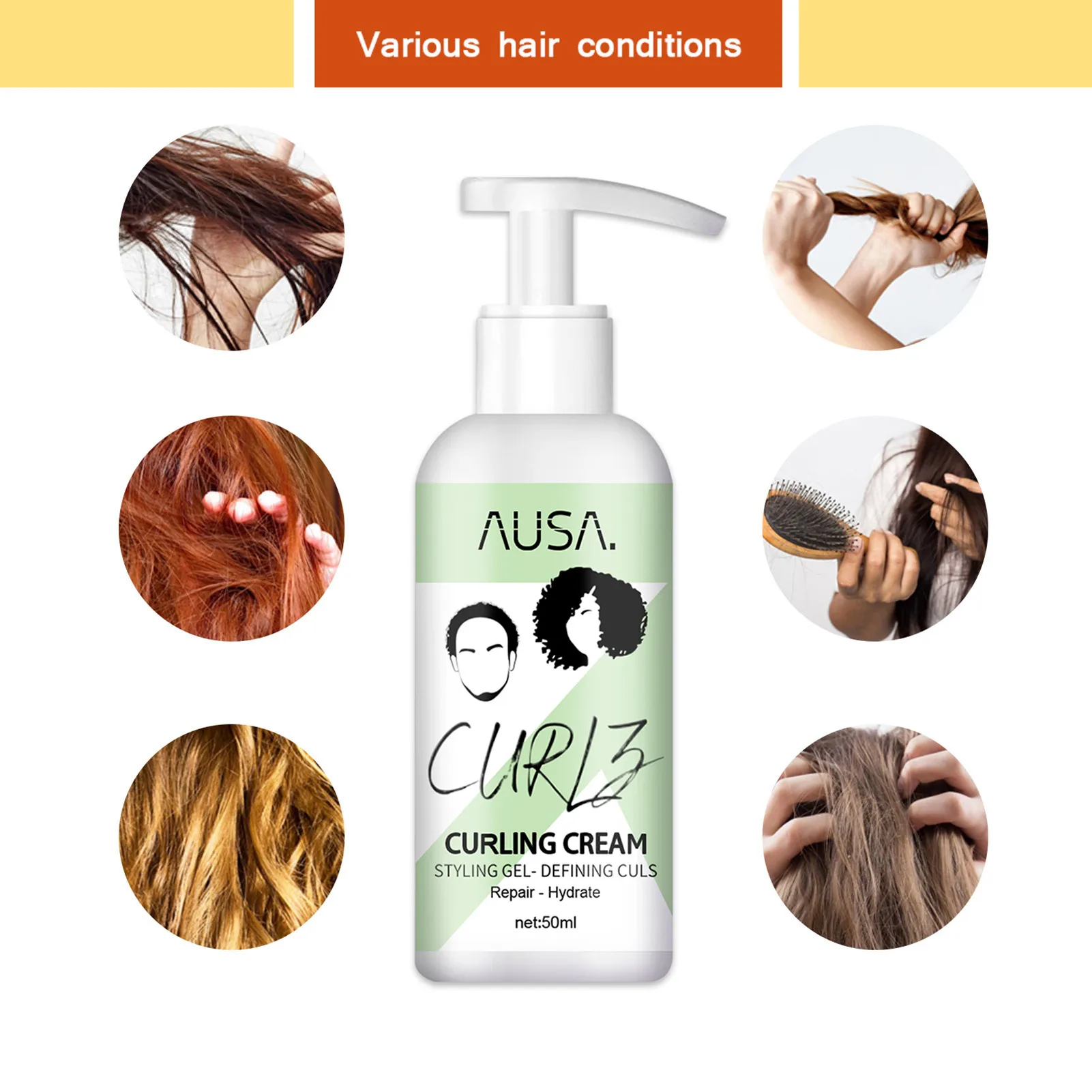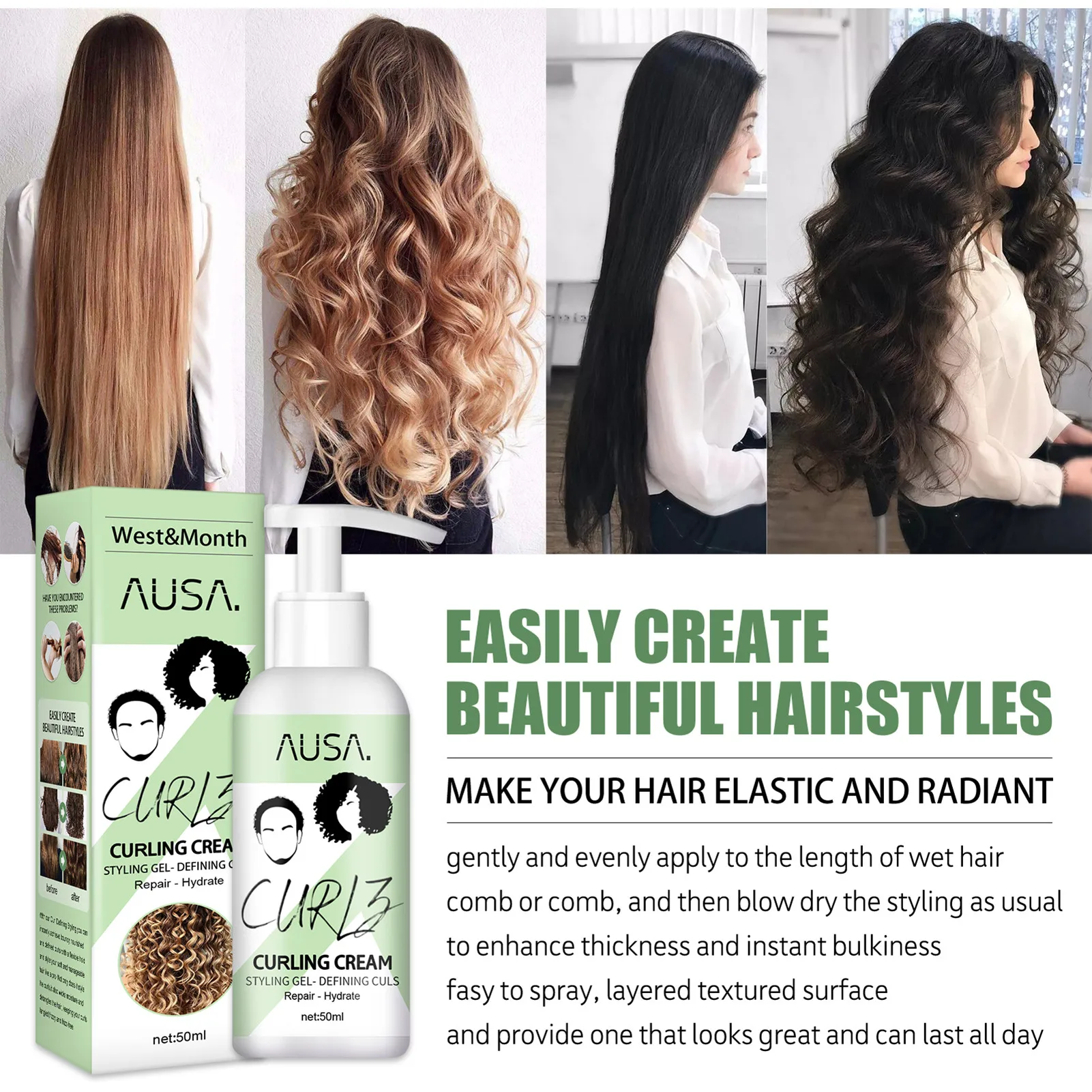 Кудрявые волосы эластин восстанавливает и активирует сухие вьющиеся волосы, увлажняет, поддерживает состояние и поддерживает влагу вьющихся волос. Он может легко создавать натуральные, пушистые, упругие и блестящие волосы для завивки.