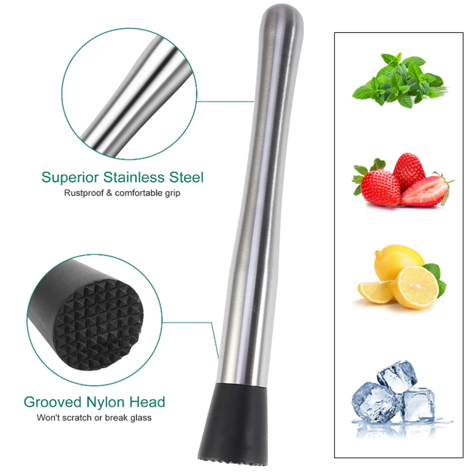 2. Рифленая нейлоновая головка не поцарапает и не разобьет ваше стекло при измельчении цитрусовых, трав и льда.