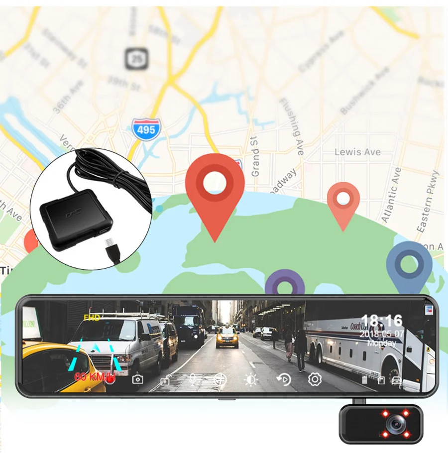 AССEО3 камеры s объектив Автомобильный видеорегистратор поток зеркало видео рекордер 12 дюймов GPS Dashcam двойной объектив поддержка 1080P камера заднего вида