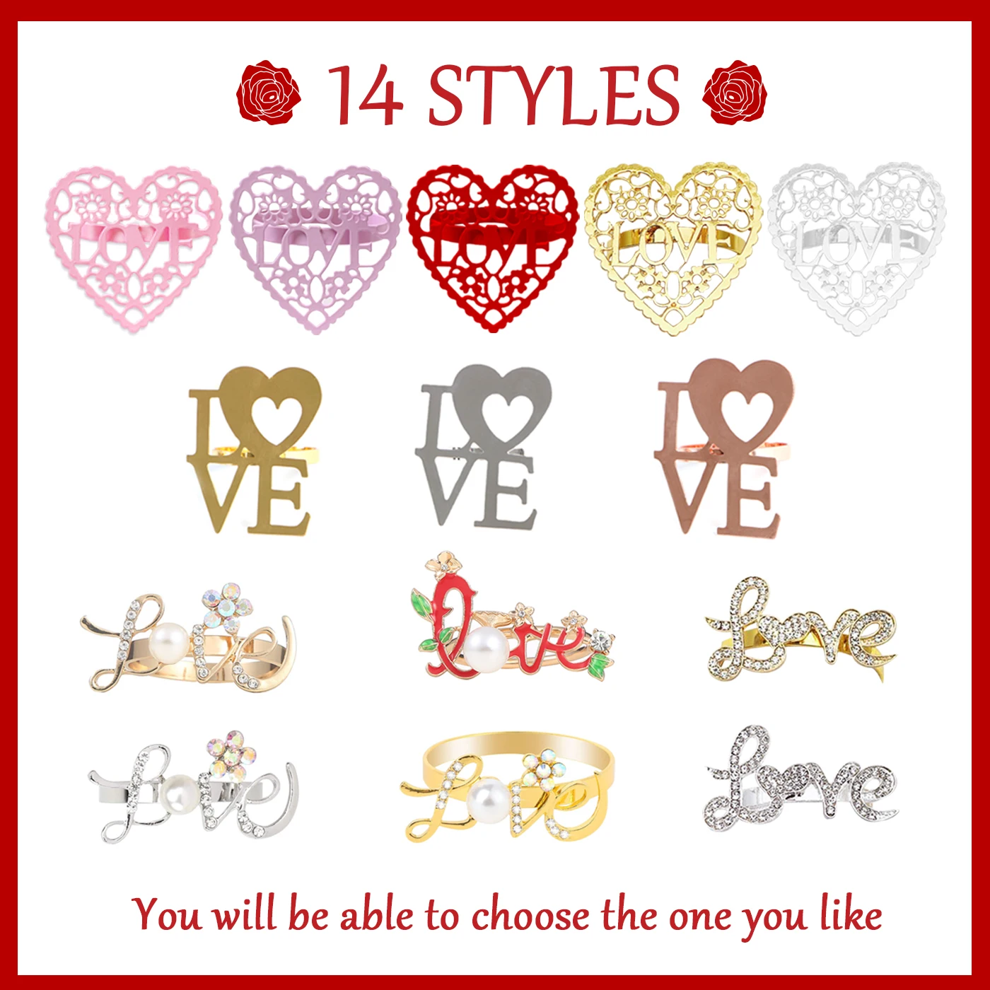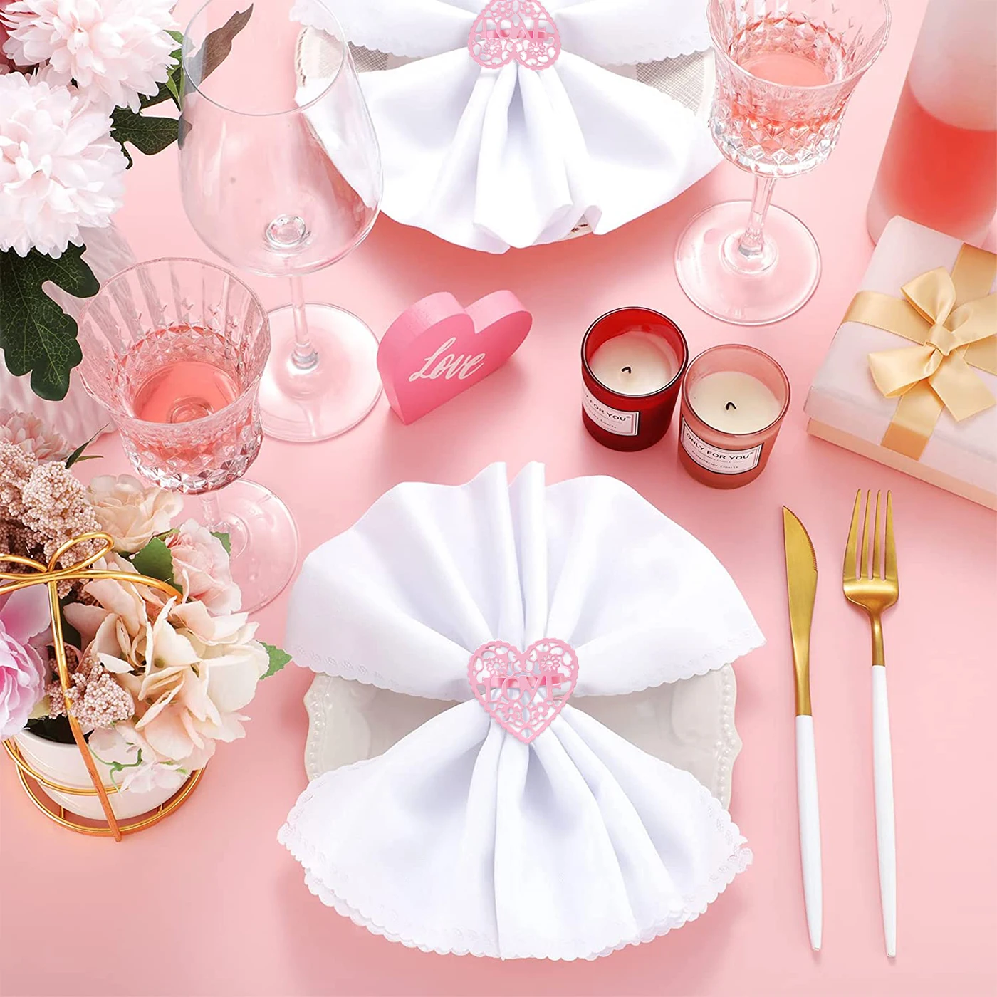 Романтичный вид: кольца для салфеток на День святого Валентина разработаны в форме сердца и украшены полыми буквами «LOVE» и цветами, яркий цвет делает их более романтичными и приятными для праздника, приносит вам и вашим любителям счастливый день.