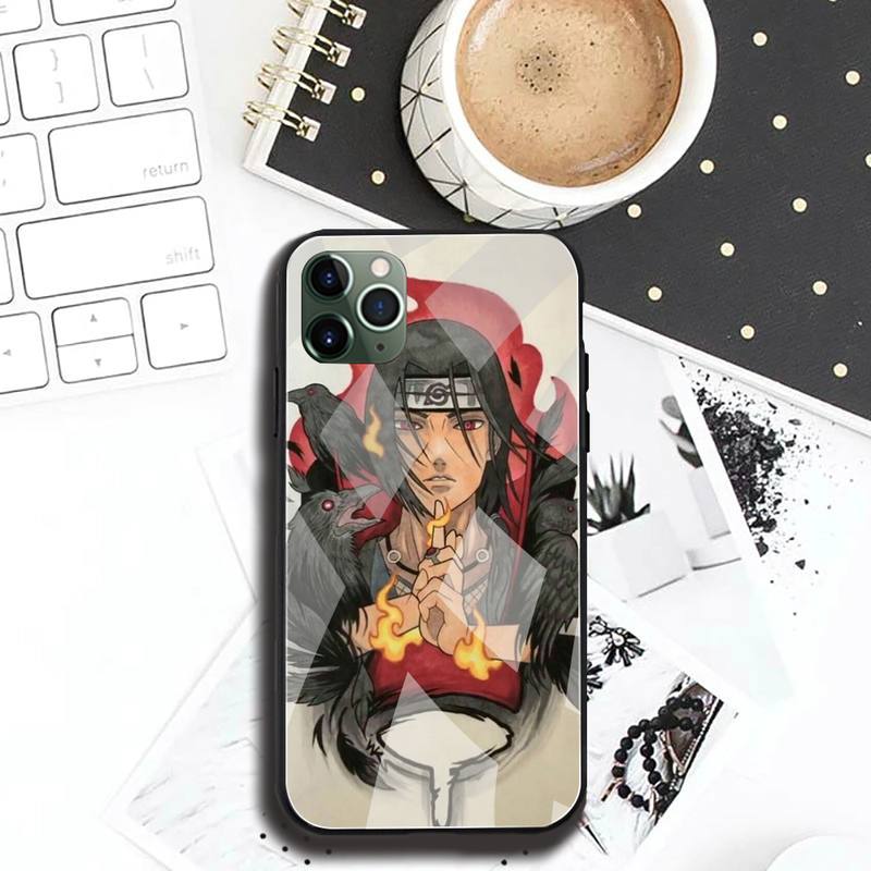 Чехол для телефона с аниме Наруто Учиха Итачи закаленное стекло iPhone 13 12 Mini 11 Pro XR XS