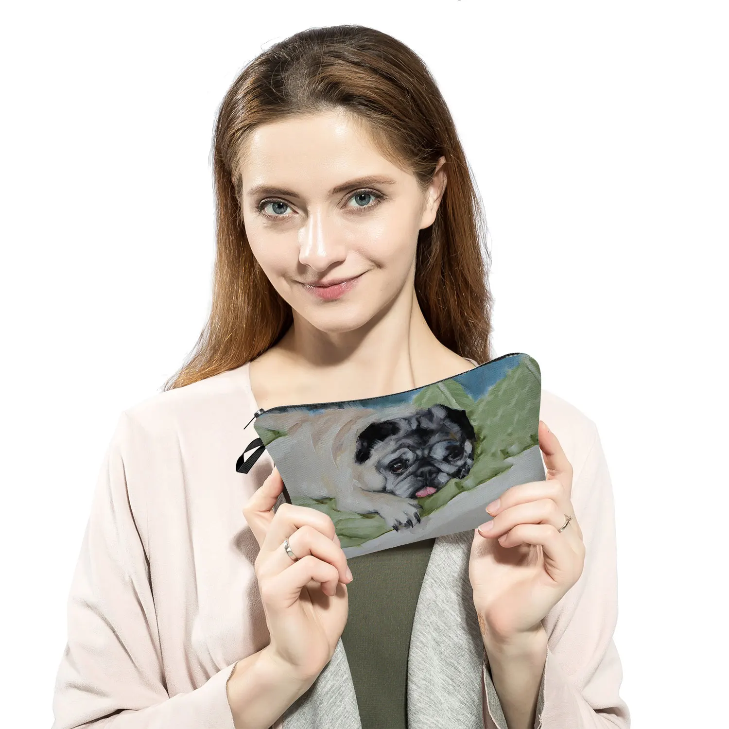 Милая сумка для макияжа с принтом мопса, высокое качество, органайзер, новые женские косметички с теплопередачей, повседневные практичные пеналы с животными