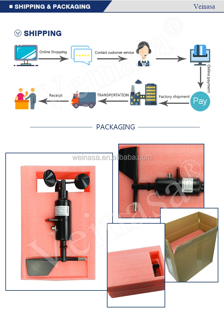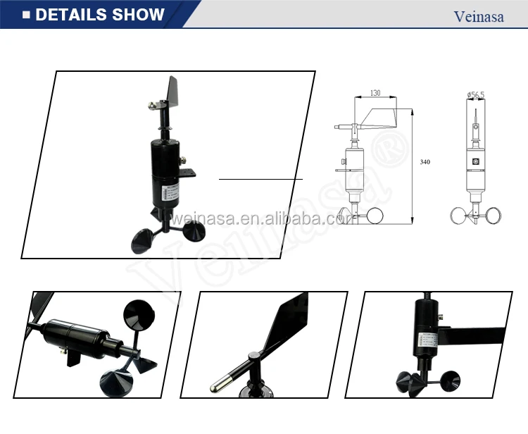 Veinasa-FXS горячая Распродажа RS485 тент датчик ветра турбинный датчик скорости лопастный измеритель водонепроницаемый Анемометр направление ветра Анемометр состоит из датчика скорости ветра и датчика направления ветра. Корпус чашки датчика скорости ветра изготовлен из металлического материала, и он принимает традиционную структуру датчика скорости ветра с тремя ветровыми чашками, выбирая углеродный материал в чашке, С характером высокой прочности и хорошего старта. Внутренний блок обработки сигнала корпуса чашки может выводить соответствующий сигнал скорости ветра в соответствии с требованиями пользователя. Прецизионный потенциометр применяется к датчику направления ветра, и низкая Инерционная металлическая ветровая лопасть выбрана для ответа на направление ветра, и динамические характеристики хороши. Продукт имеет преимущества большого диапазона измерений, хорошей линейности, сильной молниестойкости, удобной, стабильной, наблюдательной и надежной.