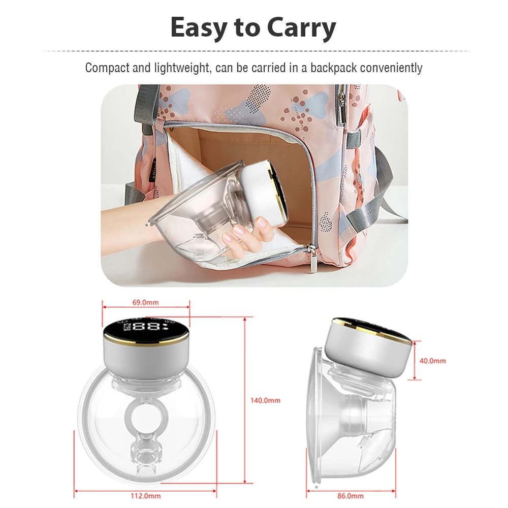 Легко чистить и носить:Каждый компонент молокоотсоса может быть легко собран и разобран. За исключением электрической части, все другие части легко моются и моются. Компактный и легкий, молокоотсос можно использовать непосредственно в бюстгальтере для кормления и удобно носить в рюкзаке.
