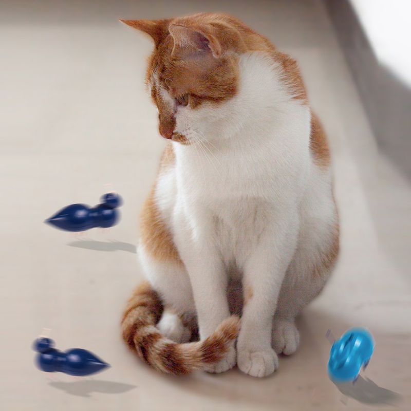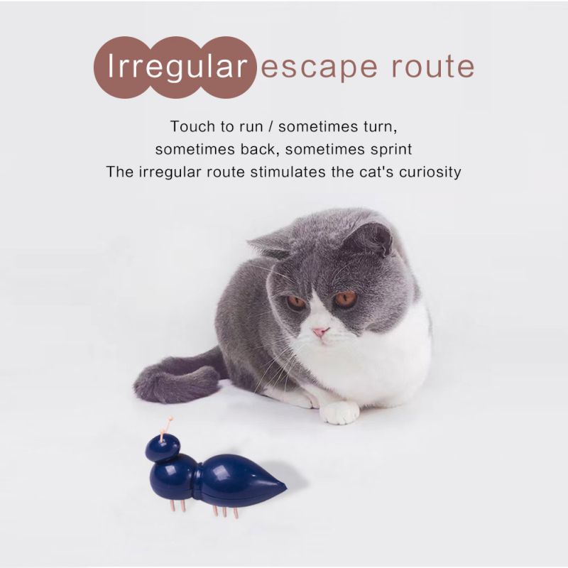 1. Run when touched,/sometimes turning, sometimes backing, sometimes sprinting, the route is irregular, which inspires the cat's curiosity