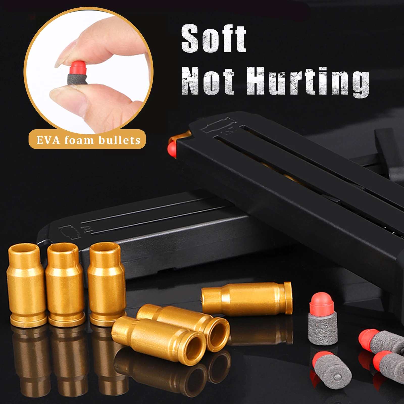 ★Не повреждает-мягкие бомбы★: Игрушечный пистолет имеет пустую оболочку и мягкие пули, мягкие пули из пены, это не повредит людям (но, пожалуйста, не направляйте на кого-либо).