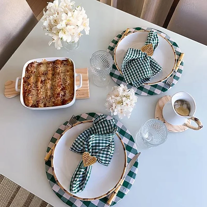 Бамбуковые тканые кольца для салфеток, деревенские держатели для салфеток ручной работы из ротанга, кольца для салфеток в форме сердца, 6 шт.