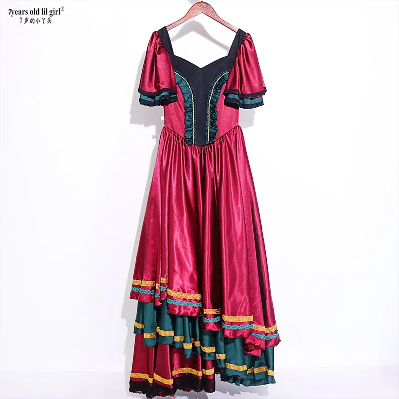 Красно-черная атласная однотонная испанская юбка фламенко женские танцевальные