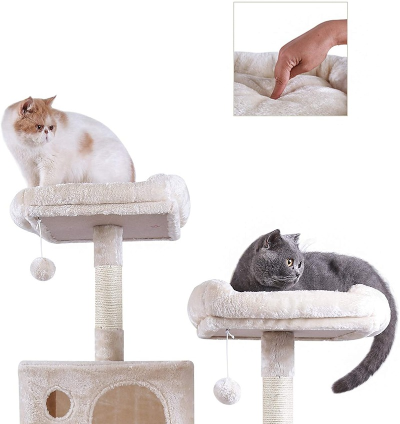 【Посмотрите основные особенности CAT TREE】Пошаговая Многослойная конструкция скачка; Для большего количества кошек; 2 вместительных жилета; 2 верхние большие платформы с внутренним сверхтолстым ковриком; Забавные игрушки; Натуральная сизалевая веревка.